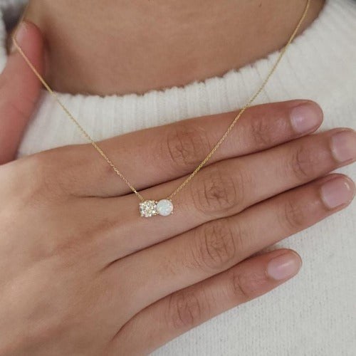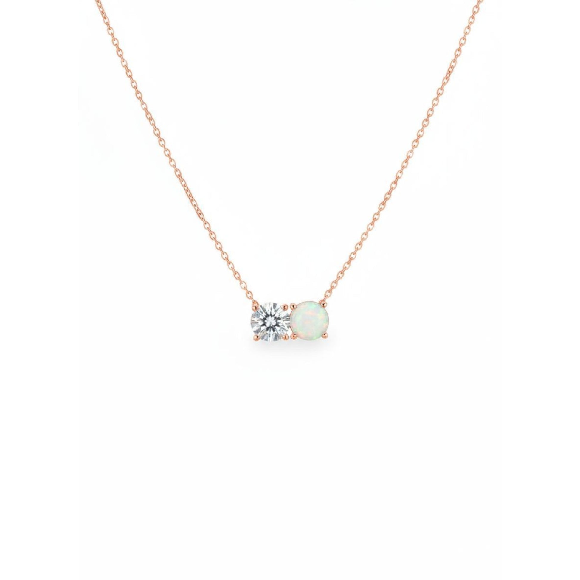 14Kt Gold 2 Stone 0.50Ct Lab Grown Diamond and Opal Round Pendant