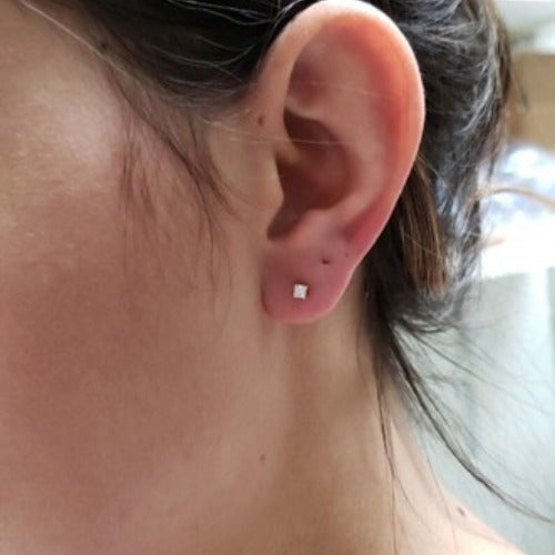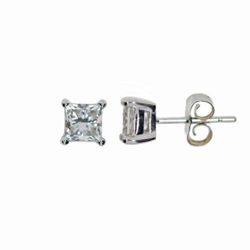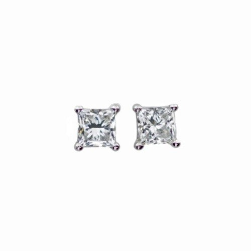 14Kt Gold 2Ct Princess Cut Square Lab Grown Diamond Stud Earrings