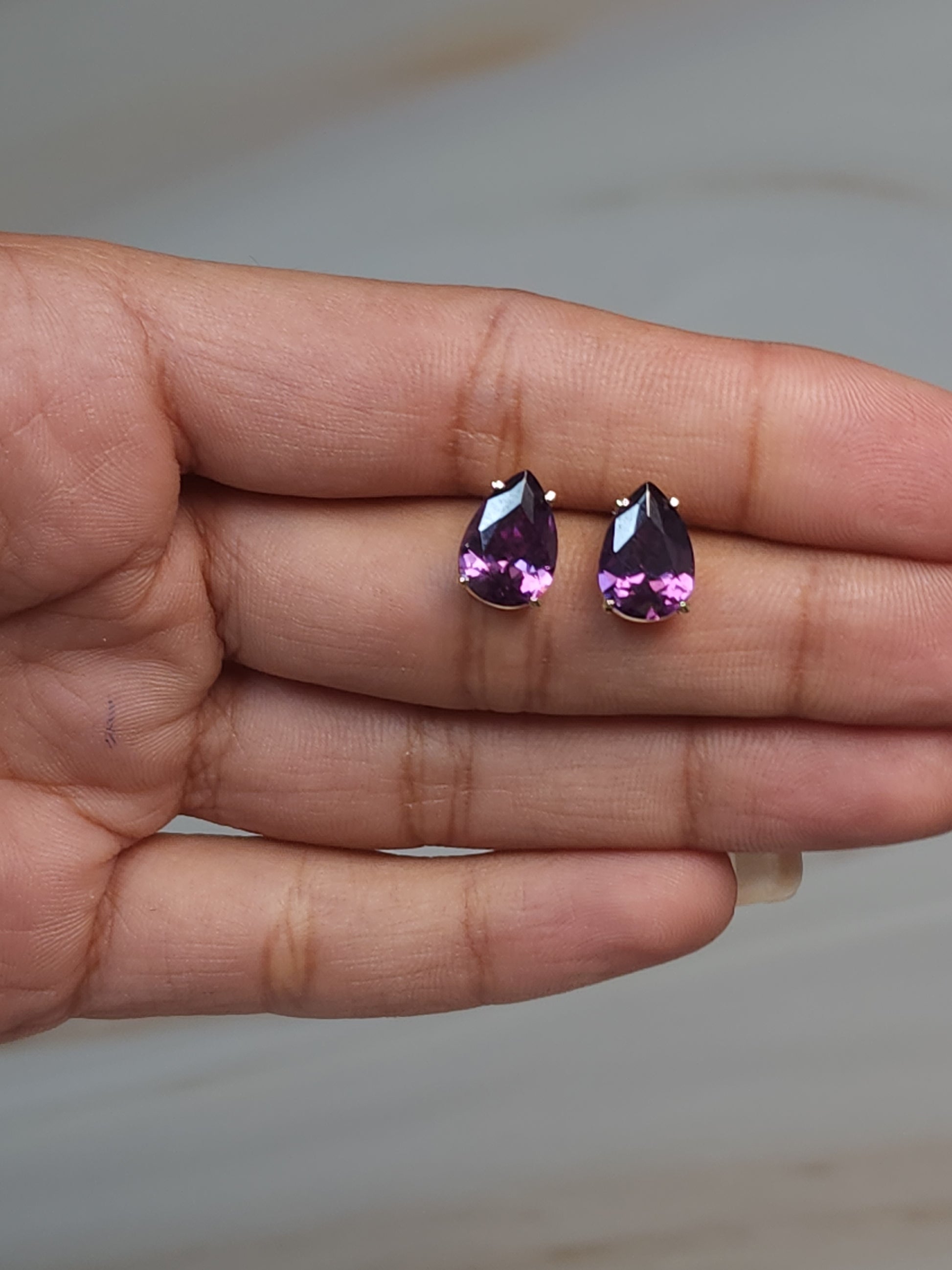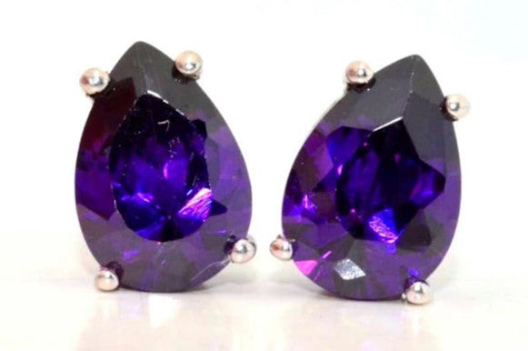 14Kt Gold 3 Ct Amethyst Teardrop Pear Shape Stud Earrings