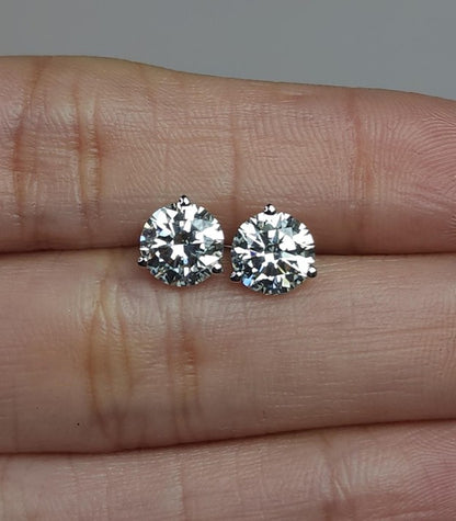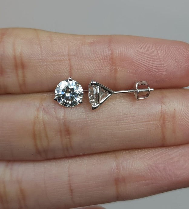 14Kt Gold 3 Prong Martini 2Ct Lab Grown Diamond Stud Earrings
