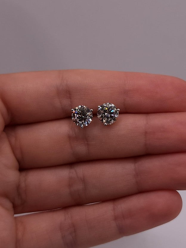 14Kt Gold 3 Prong Martini 4Ct Lab Grown Diamond Stud Earrings