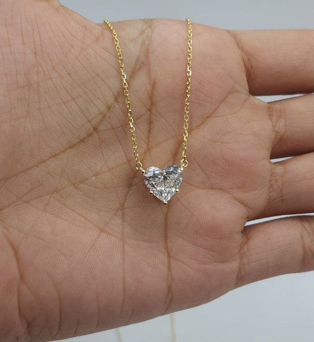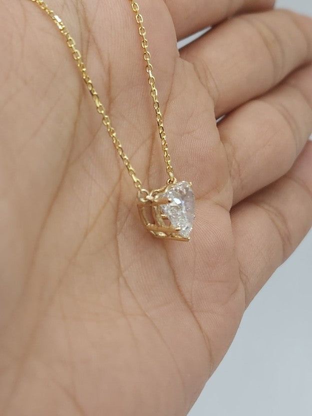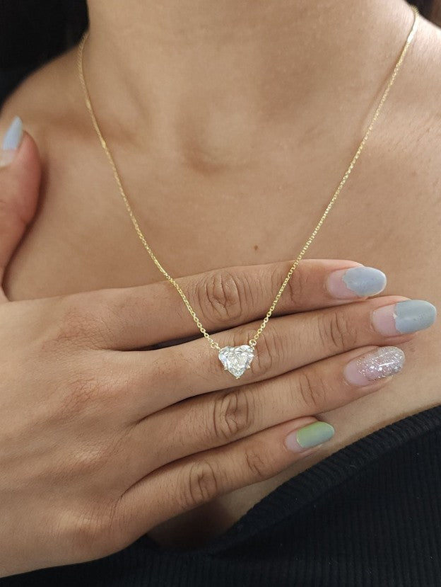 14Kt Gold 4 Ct 5 Prong IGI Certified Lab Grown Diamond Heart Pendant Necklace