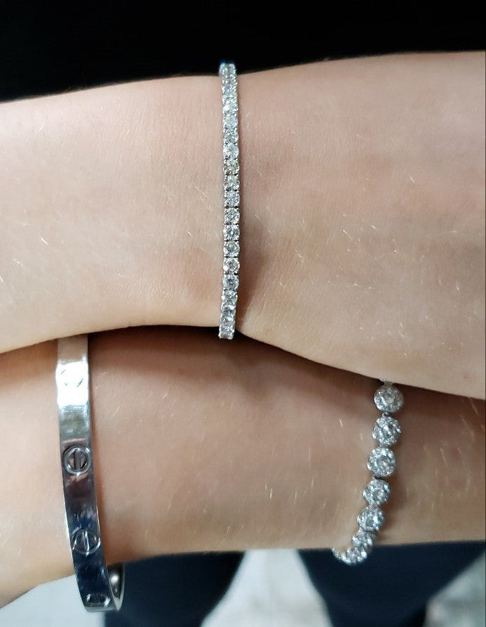 This tennis bracelet can be worn all the time. It has a secure lock.