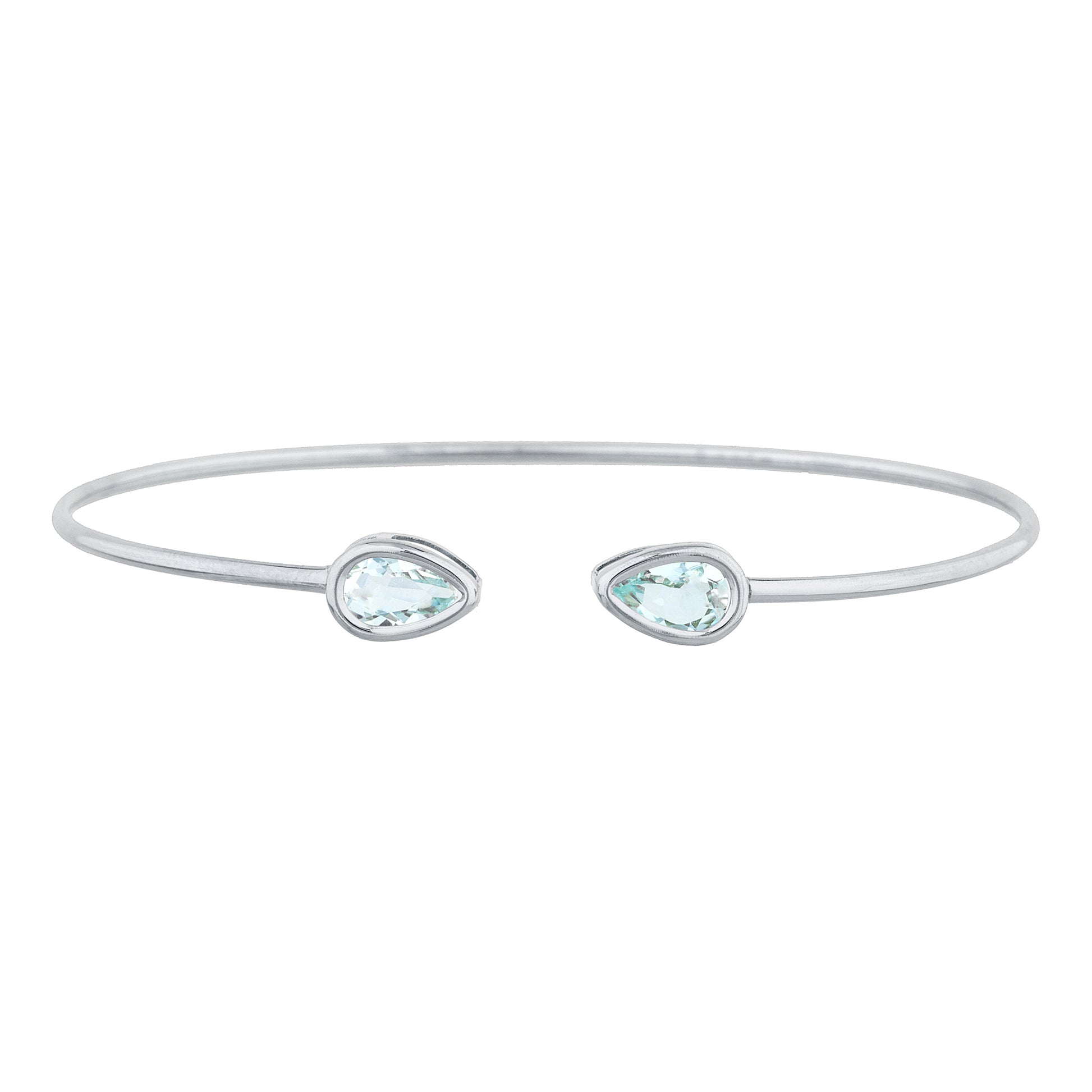 14Kt Gold Aquamarine Pear Bezel Bangle Bracelet