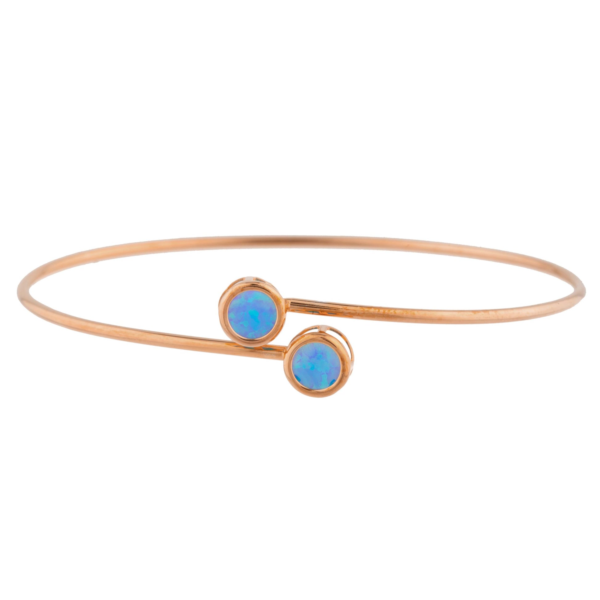 14Kt Gold Blue Opal Round Bezel Bangle Bracelet