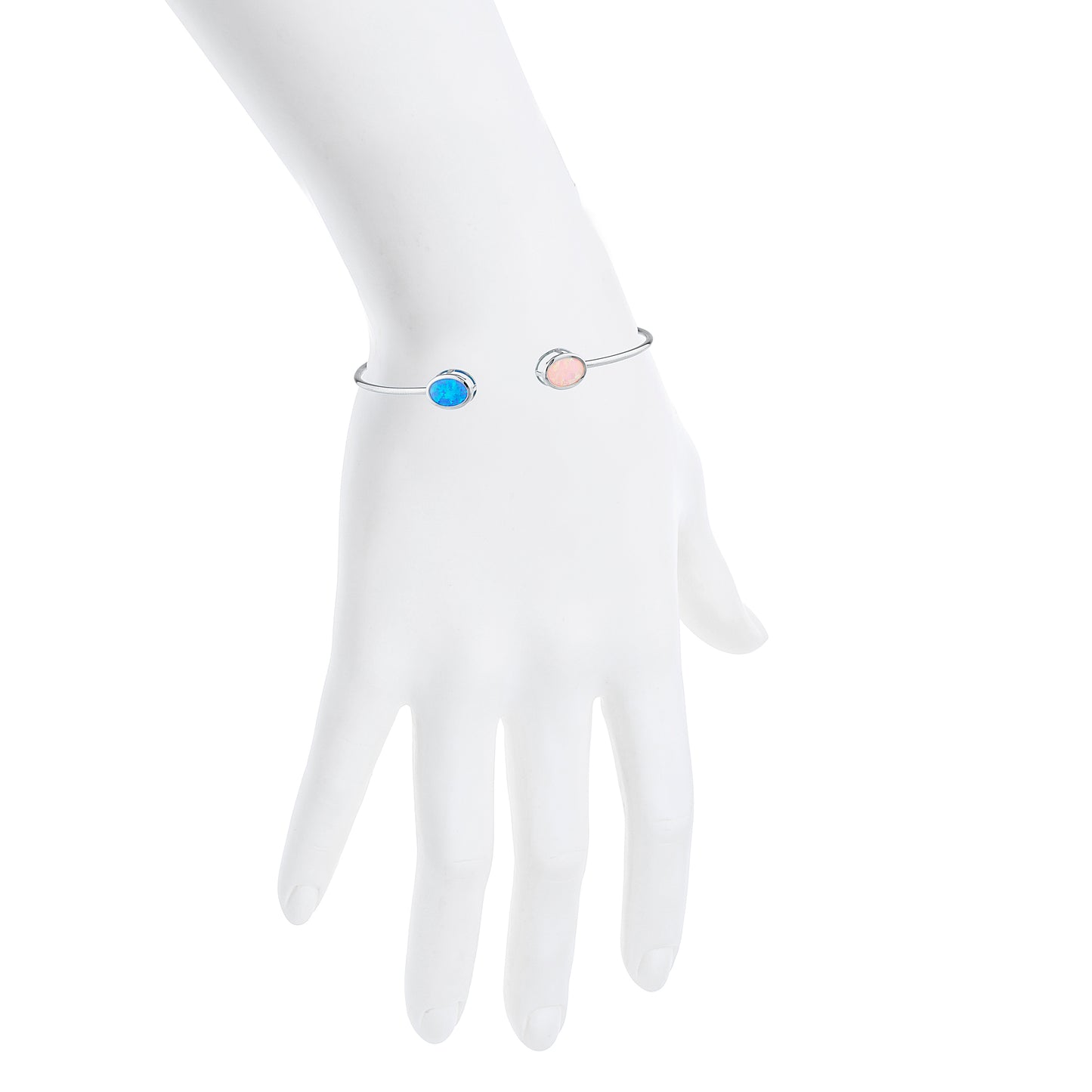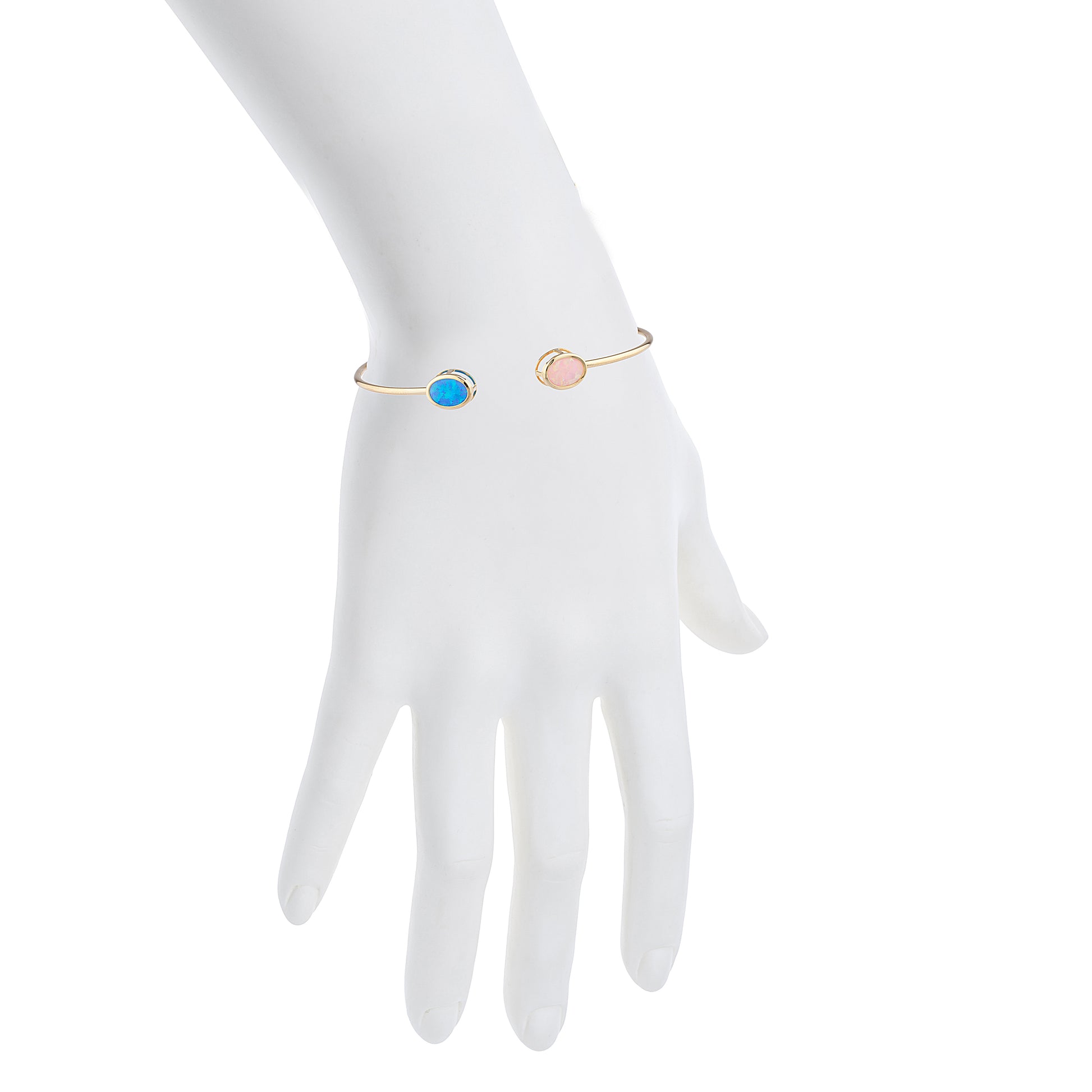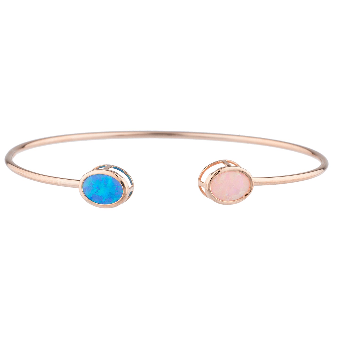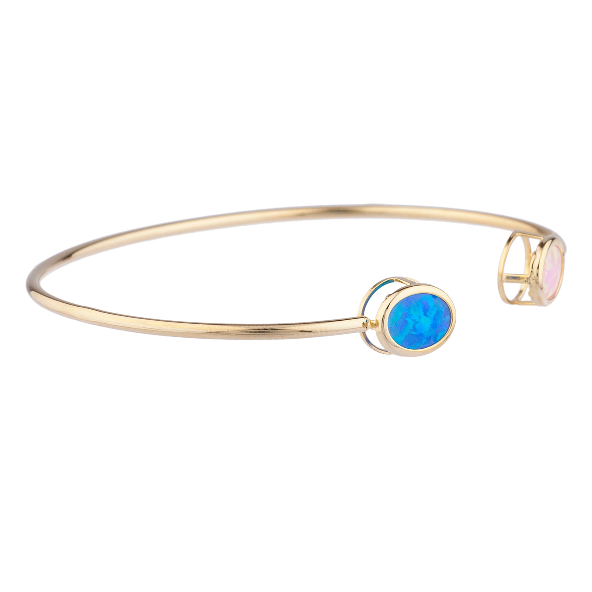 14Kt Gold Blue & Pink Opal Oval Bezel Bangle Bracelet