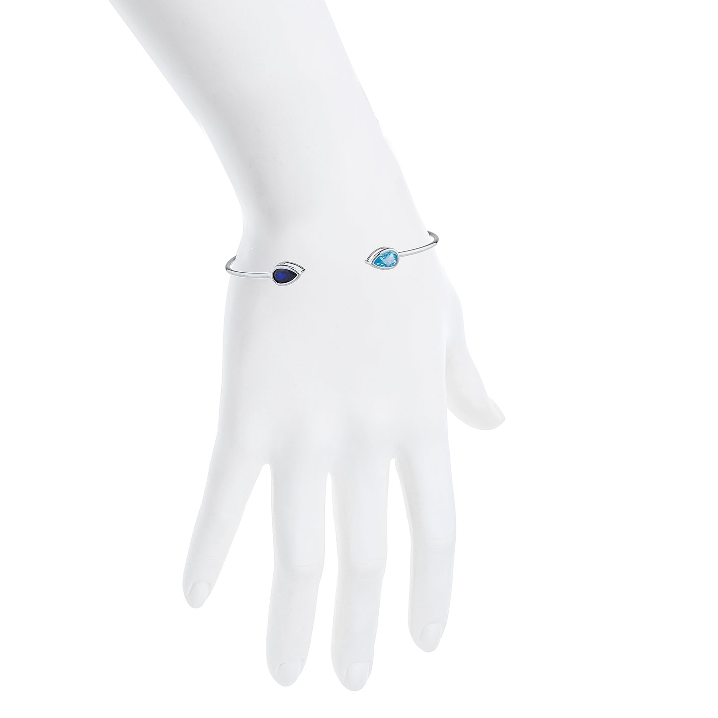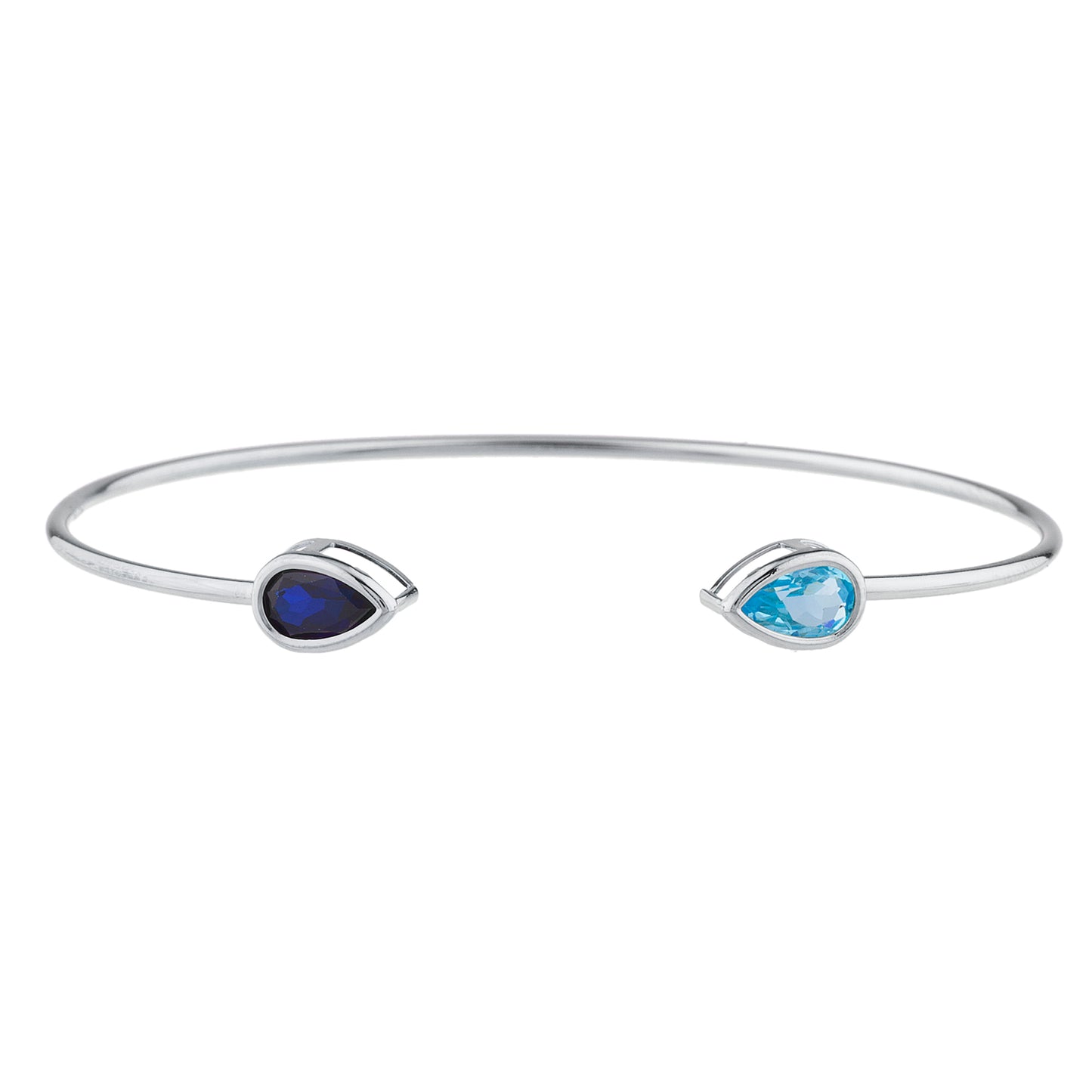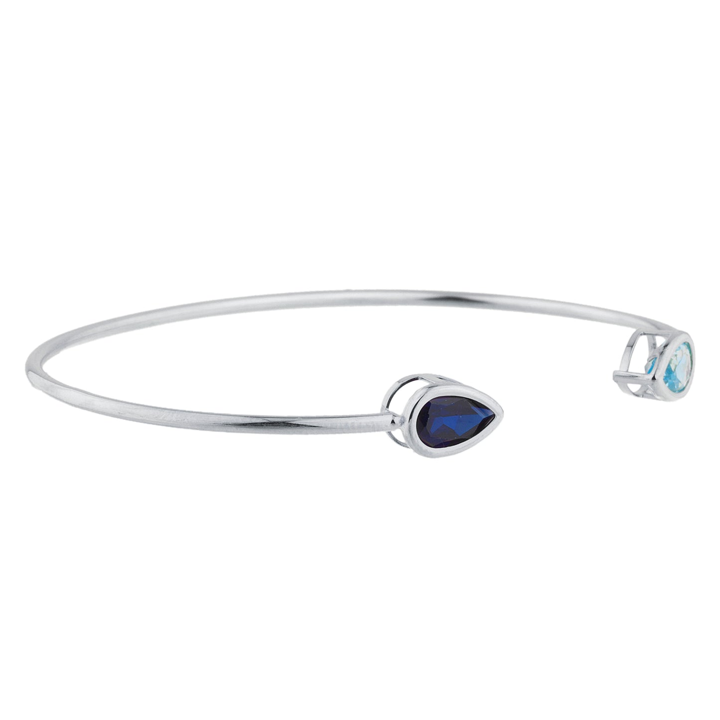 14Kt Gold Blue Sapphire & Blue Topaz Pear Bezel Bangle Bracelet