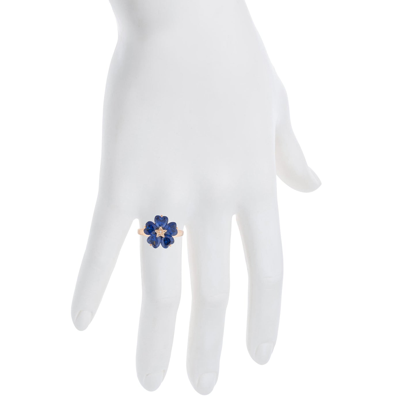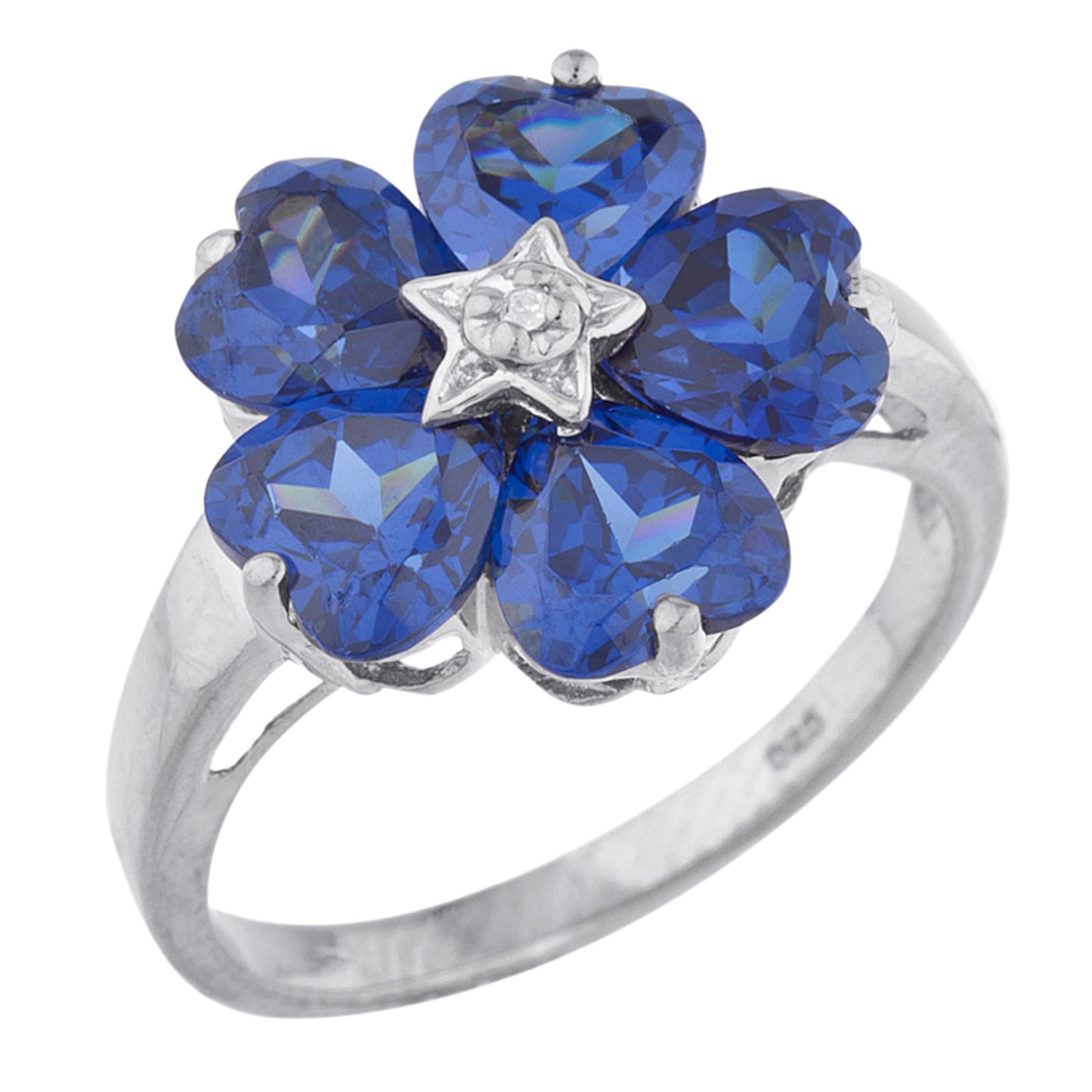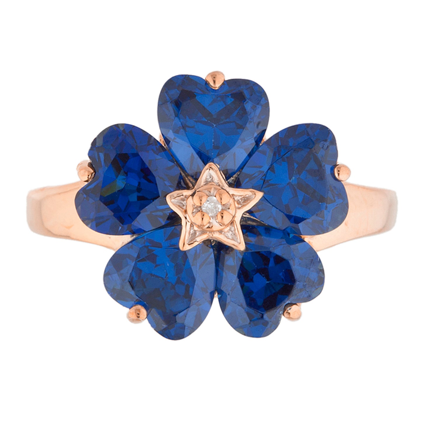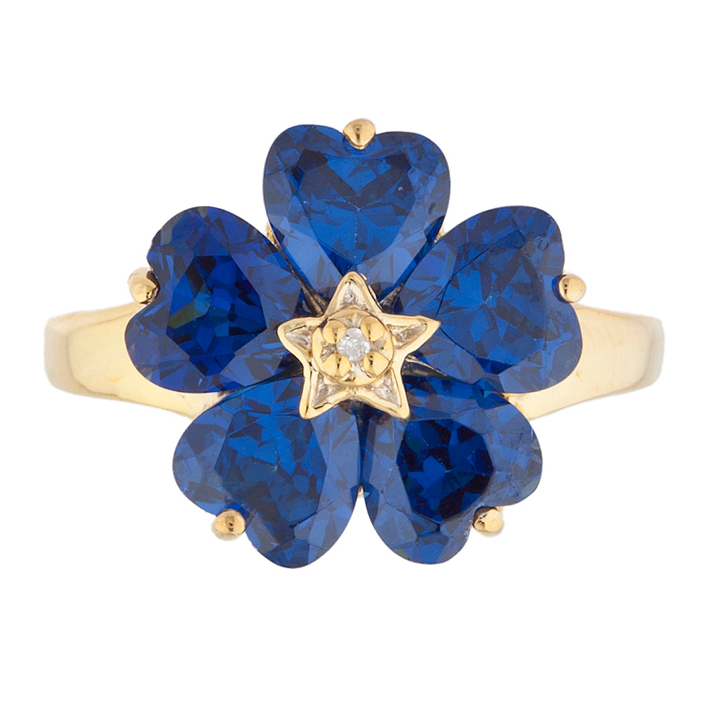 14Kt Gold Blue Sapphire & Diamond Heart Flower Design Ring