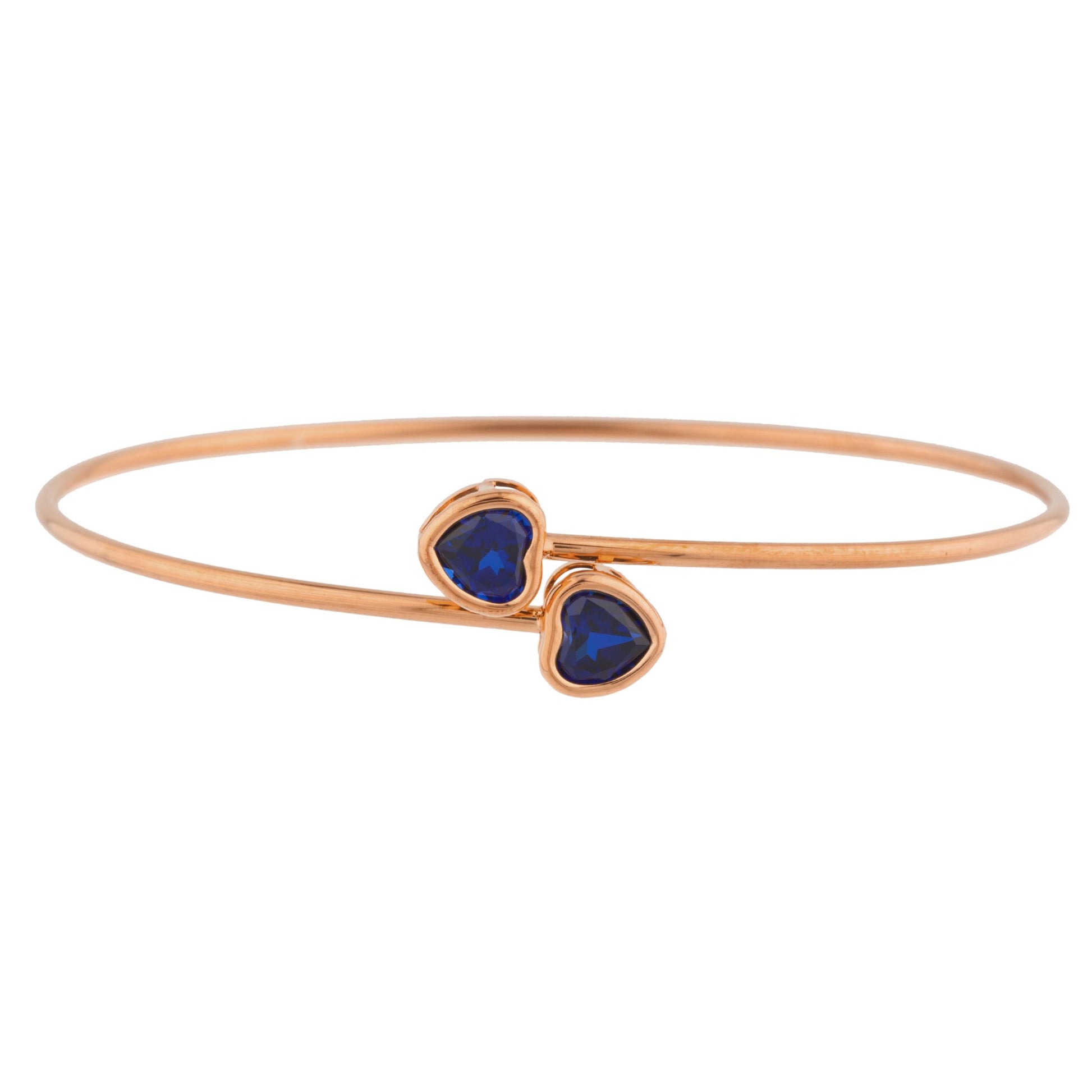 14Kt Gold Blue Sapphire Heart Bezel Bangle Bracelet