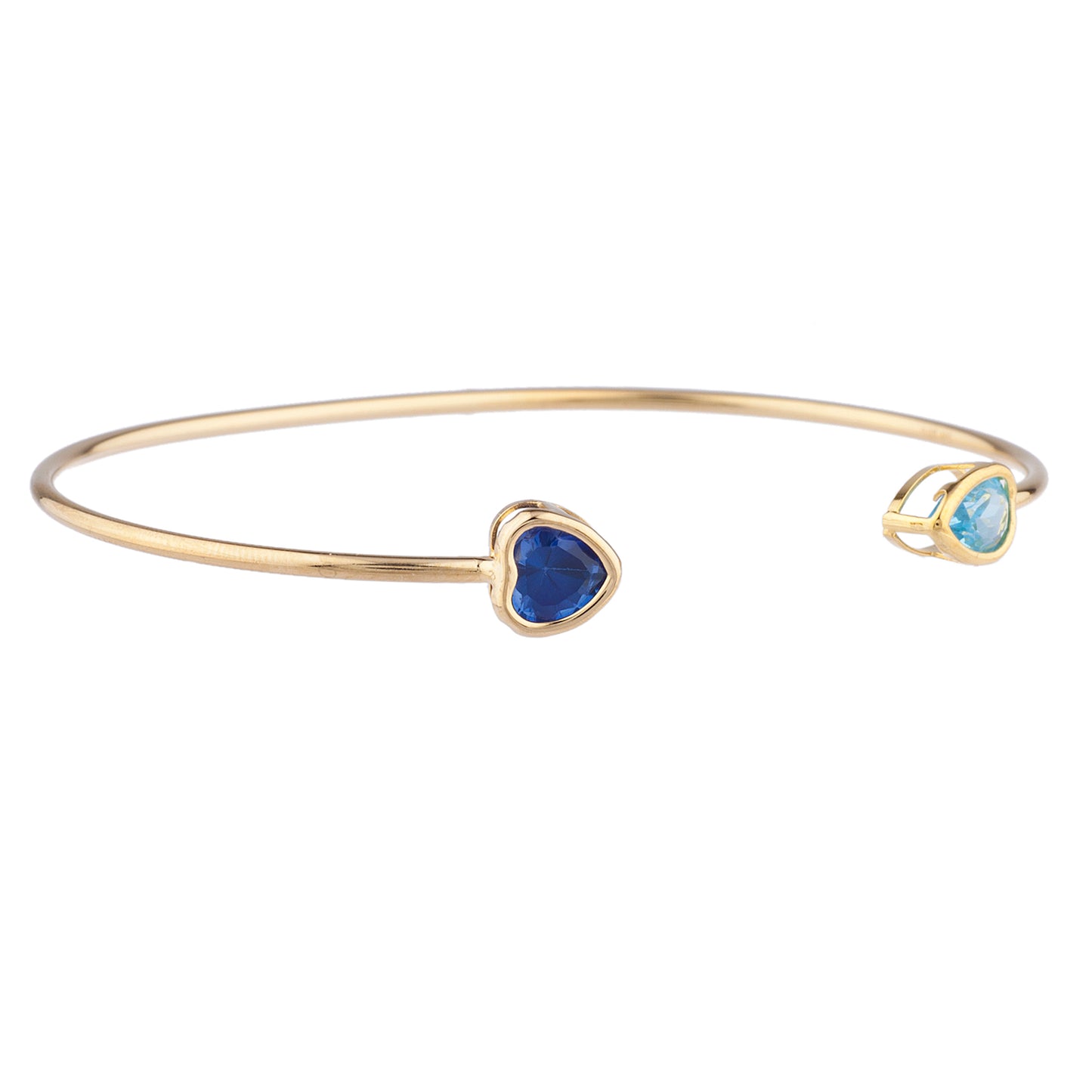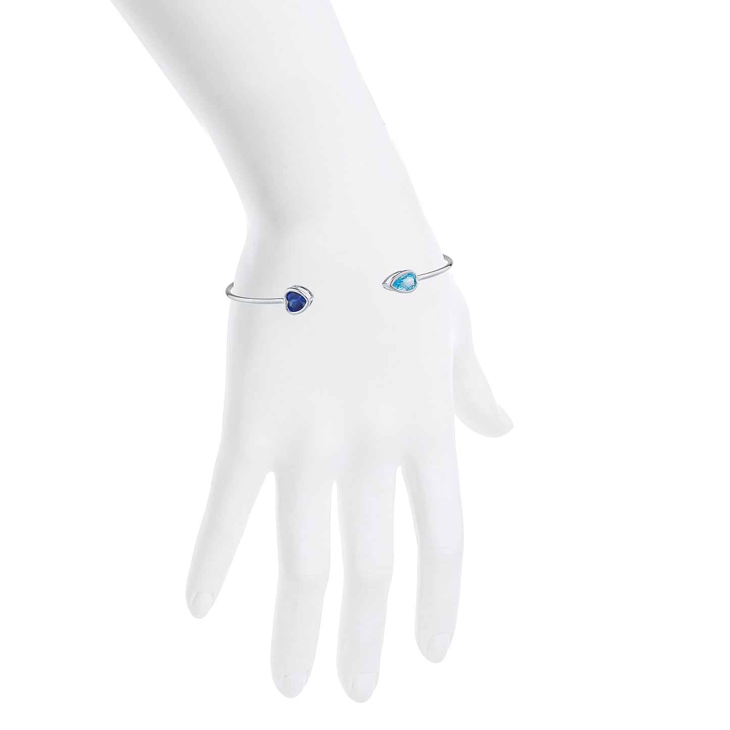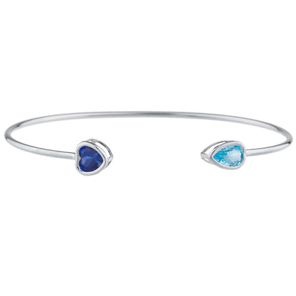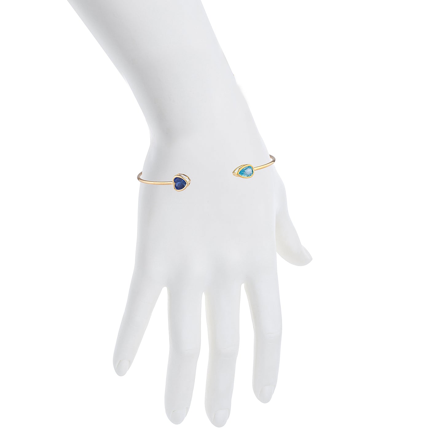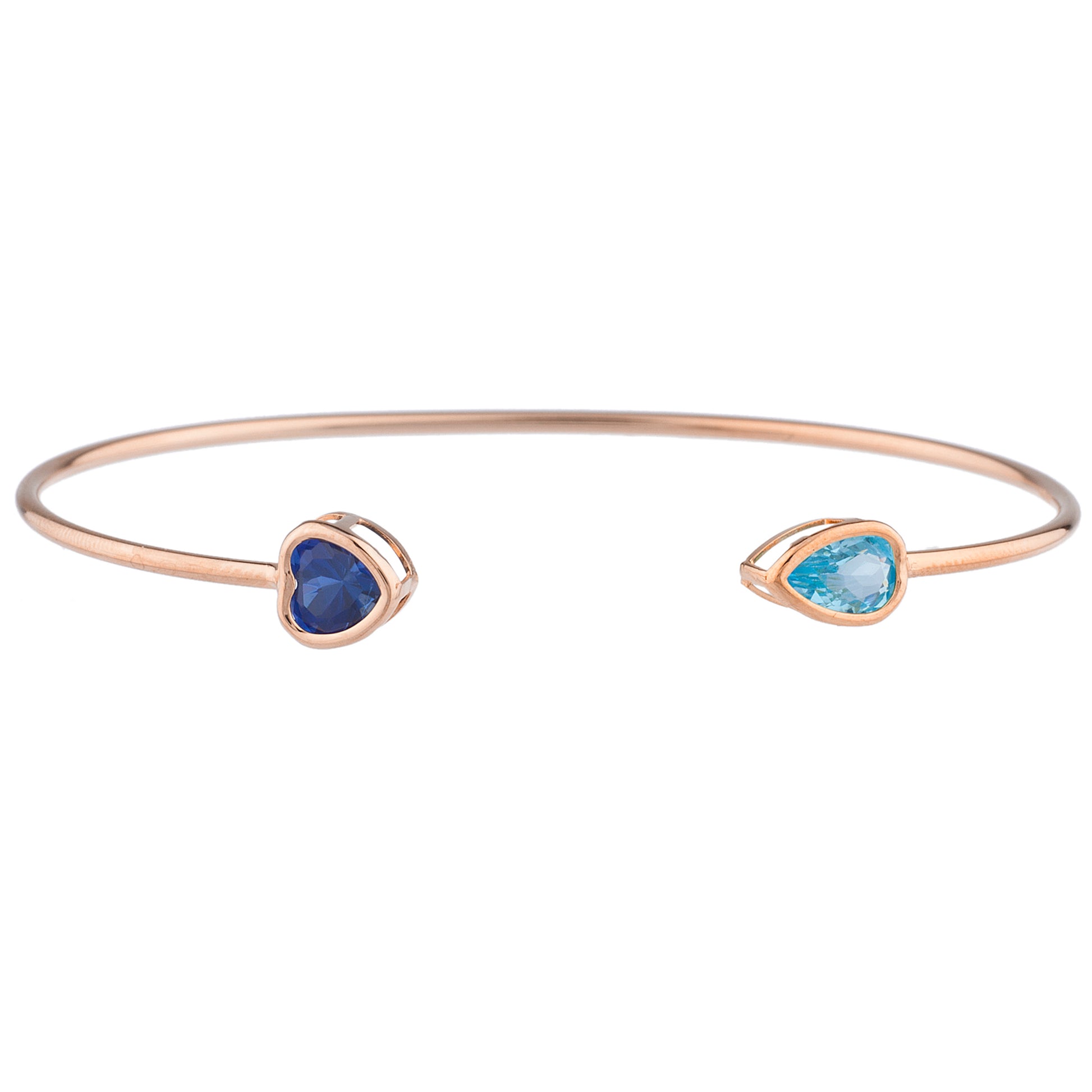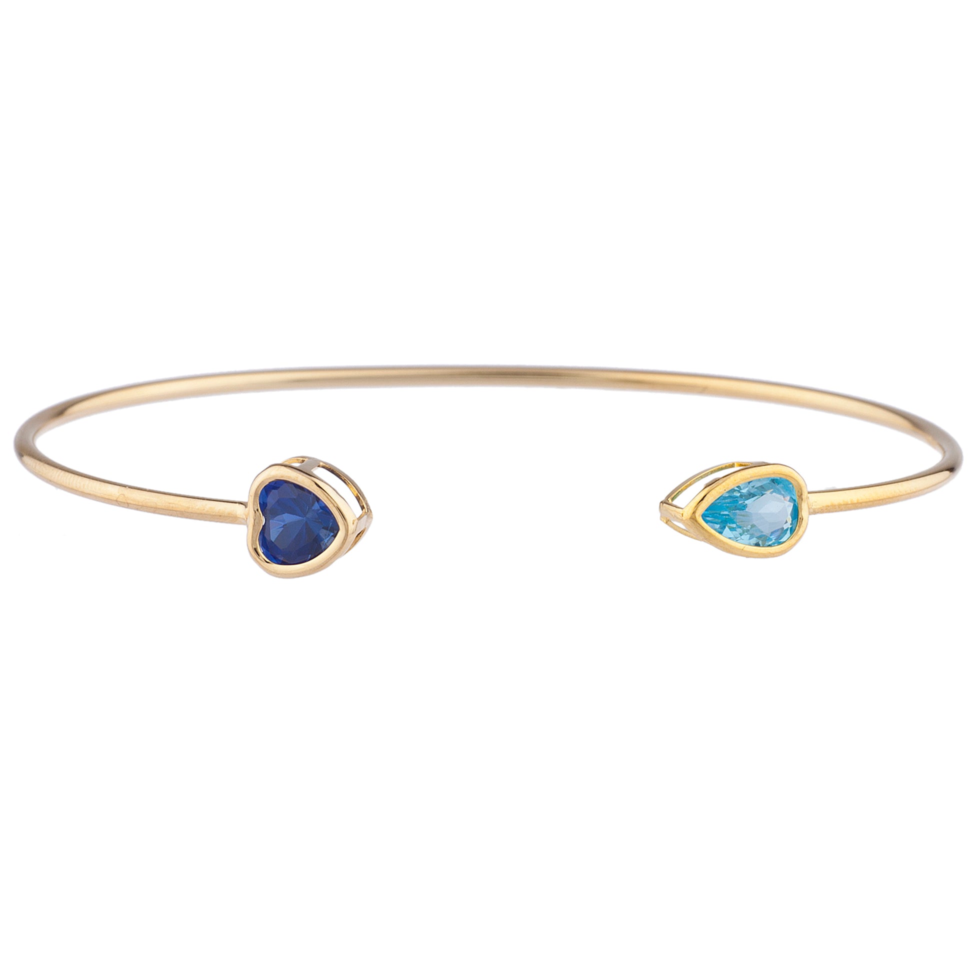 14Kt Gold Blue Sapphire Heart & Blue Topaz Pear Bezel Bangle Bracelet