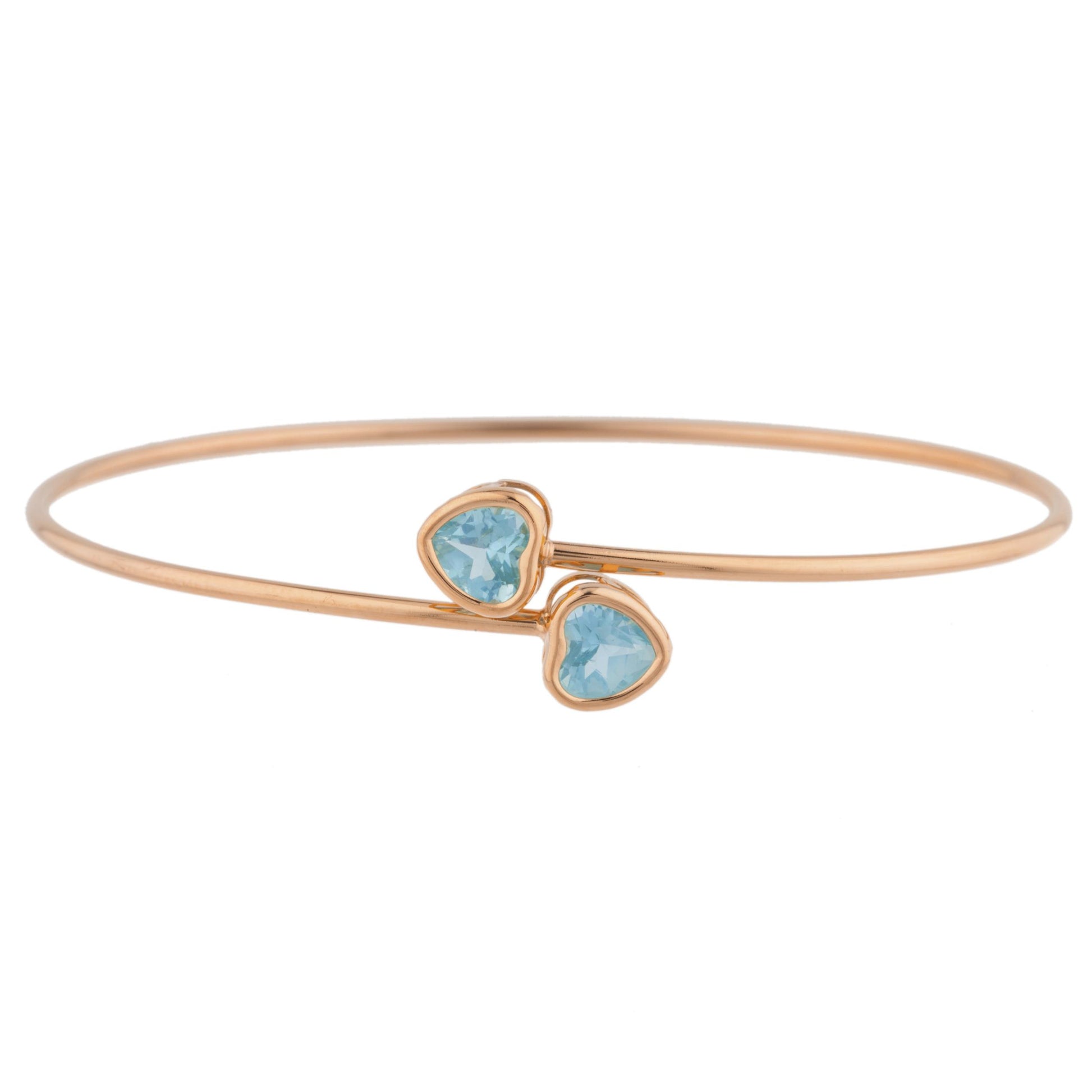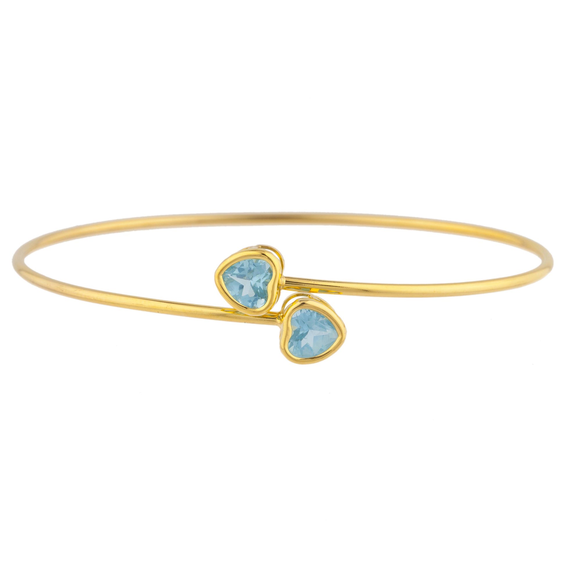 14Kt Gold Blue Topaz Heart Bezel Bangle Bracelet