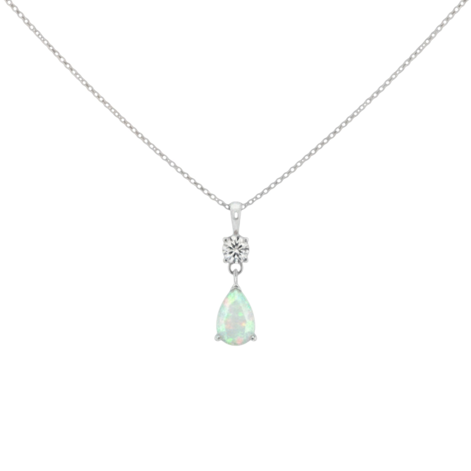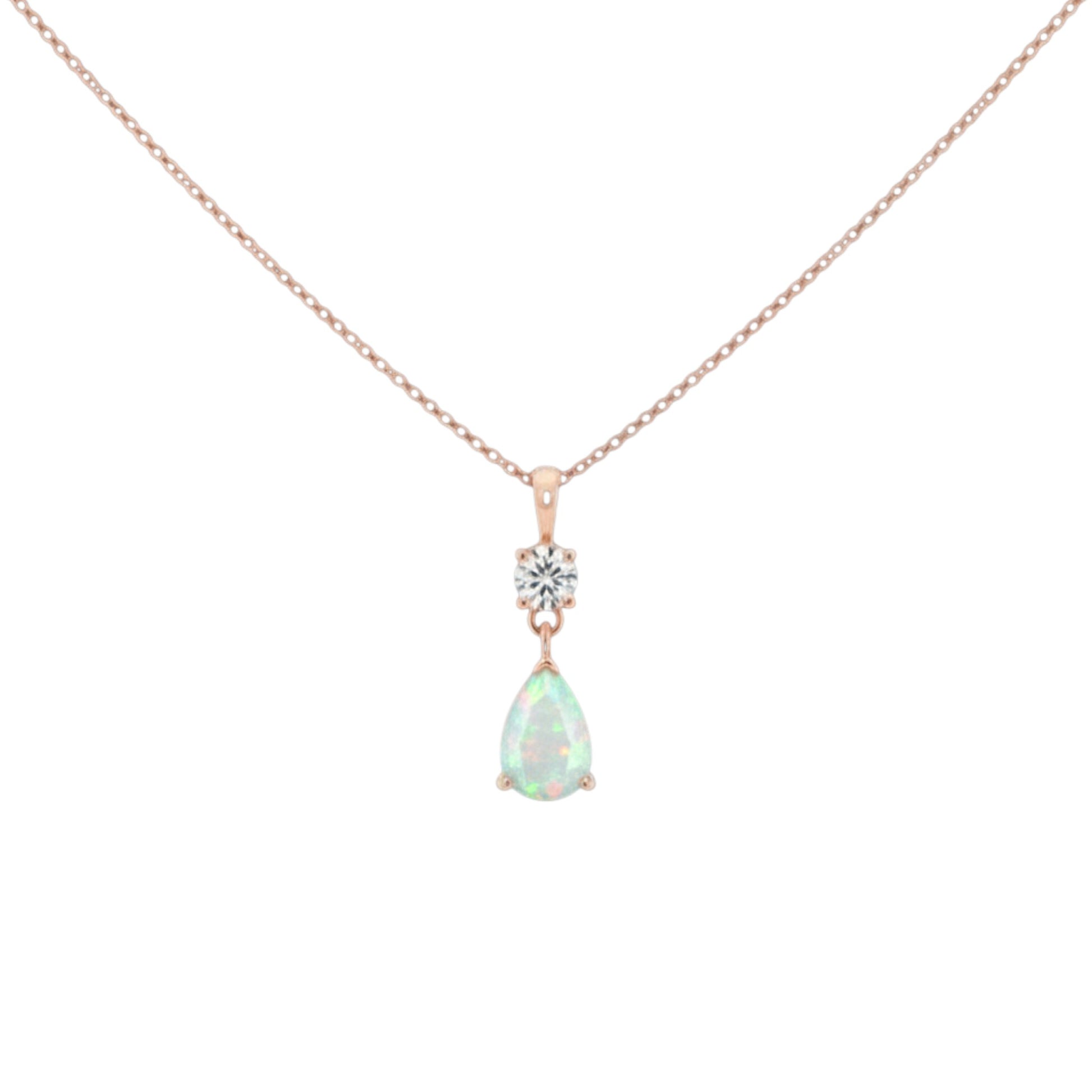 14Kt Gold Created Opal Teardrop & Lab Grown Diamond Pendant