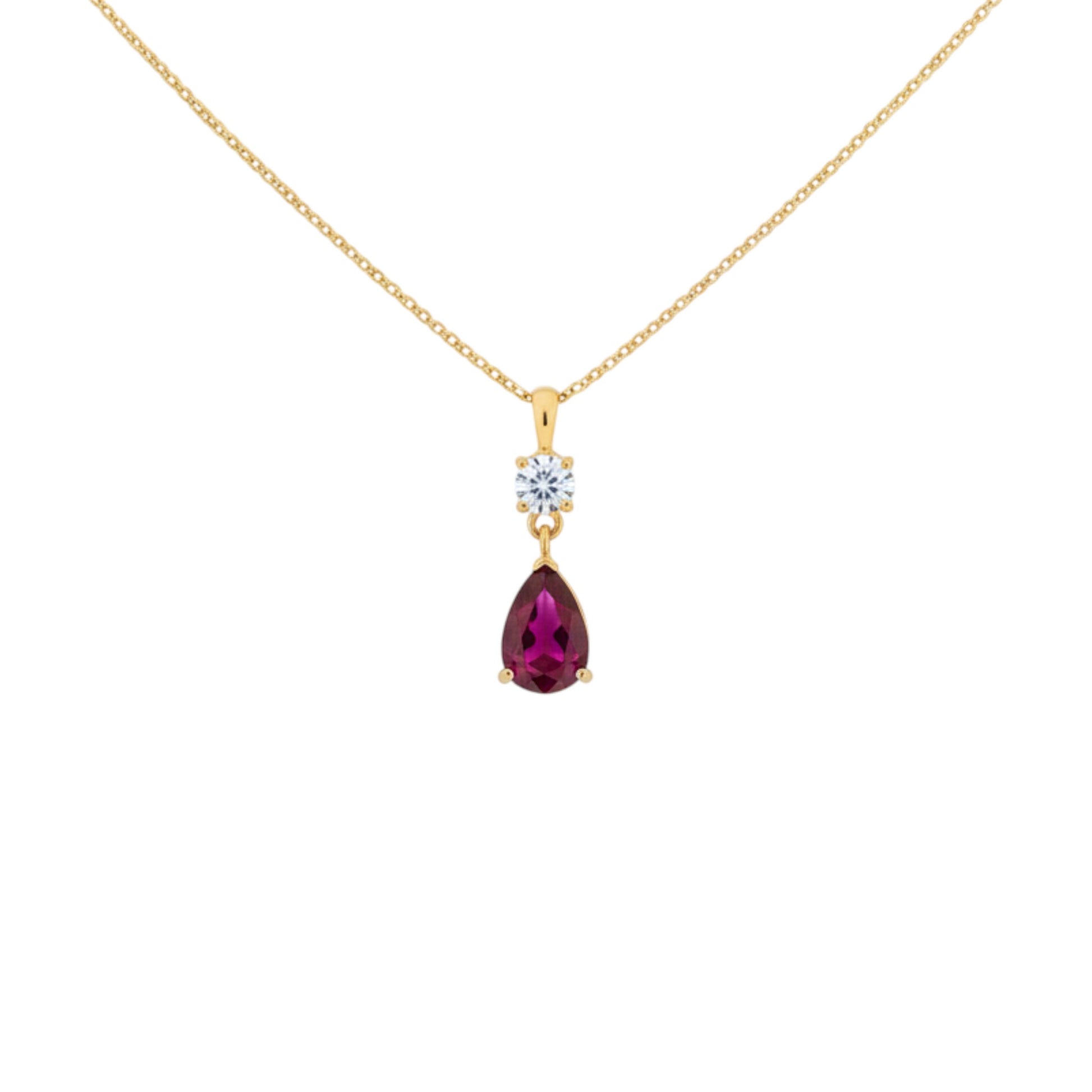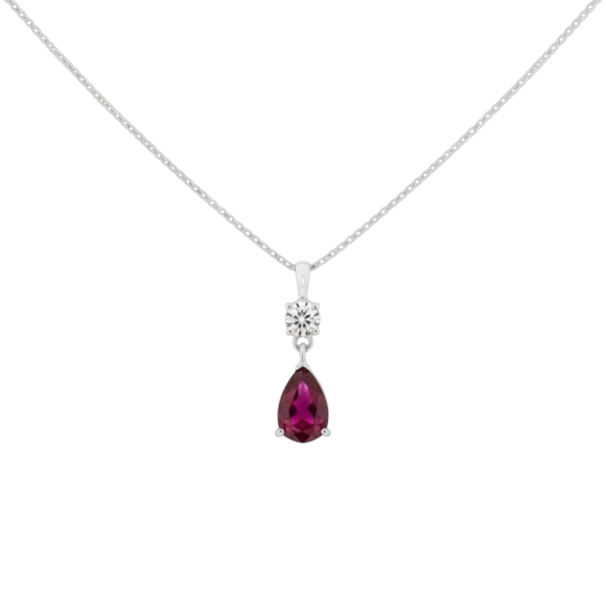 14Kt Gold Created Ruby Teardrop & Lab Grown Diamond Pendant