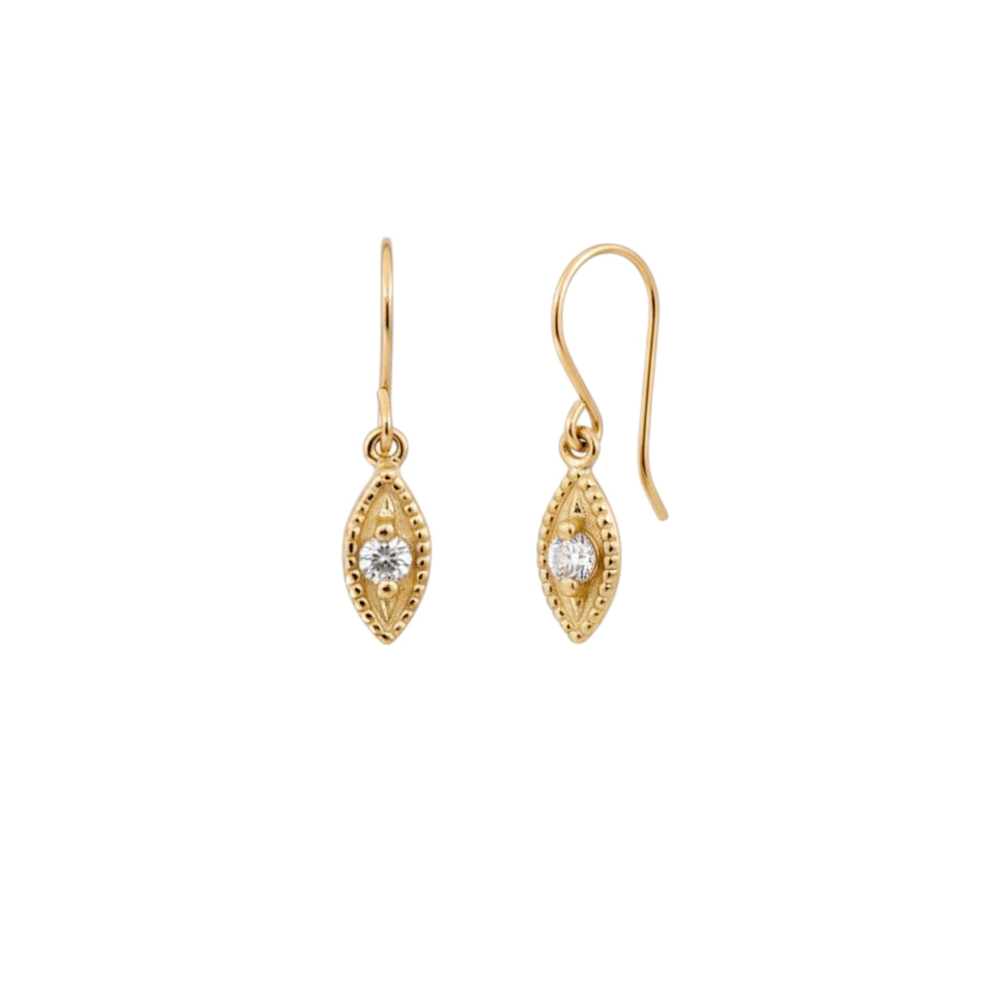 14Kt Gold Diamond Double Side Eye Dangle Earrings