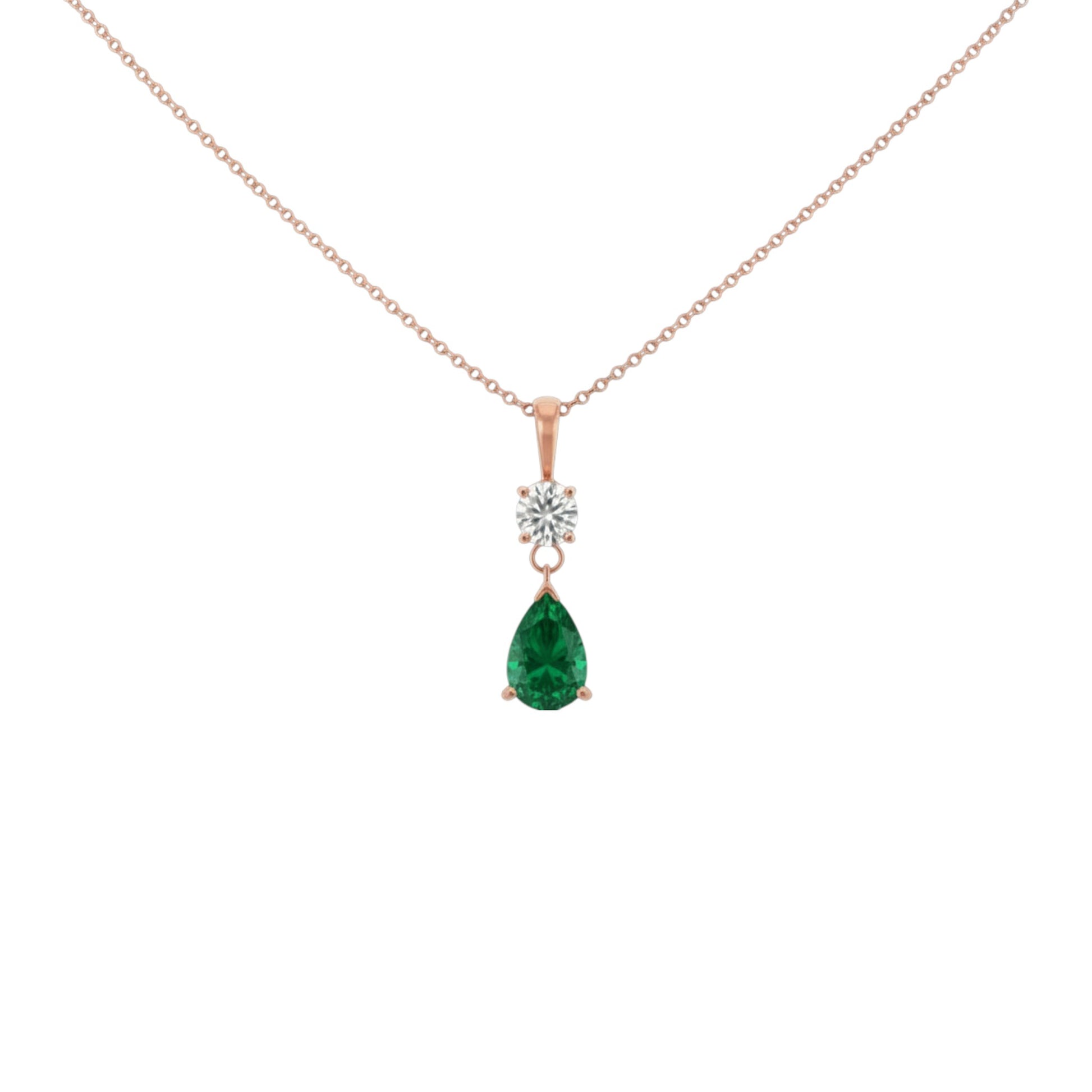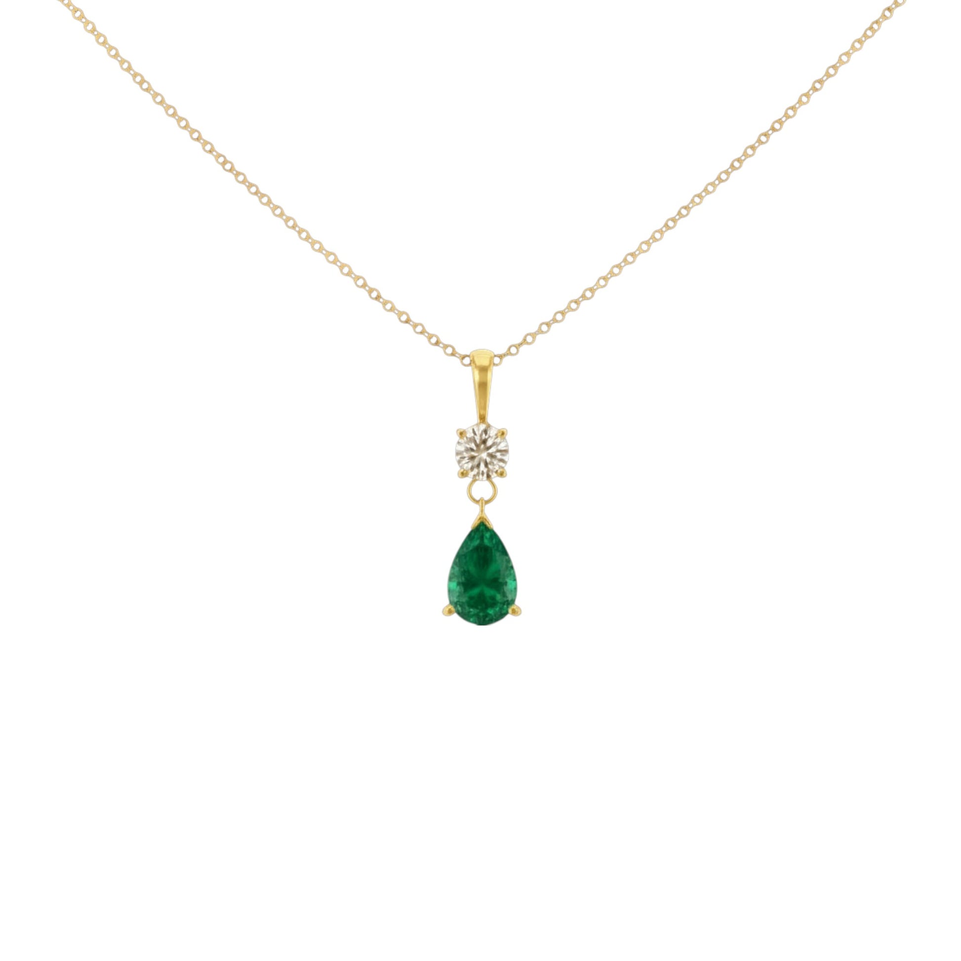 14Kt Gold Emerald Teardrop & Lab Grown Diamond Pendant