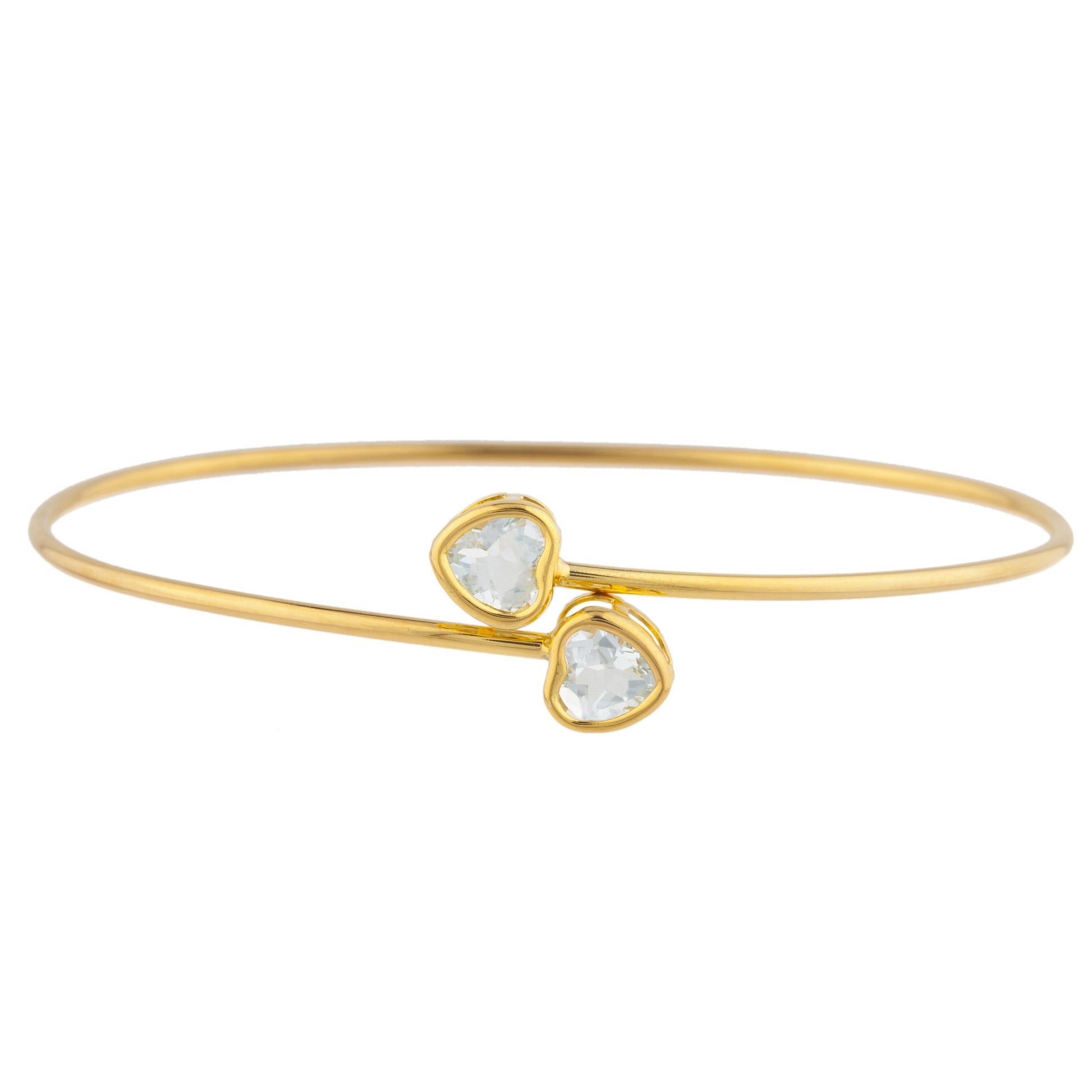 14Kt Gold Genuine Aquamarine Heart Bezel Bangle Bracelet