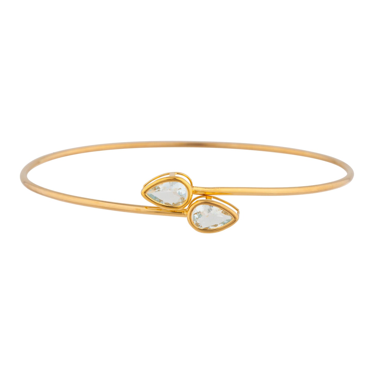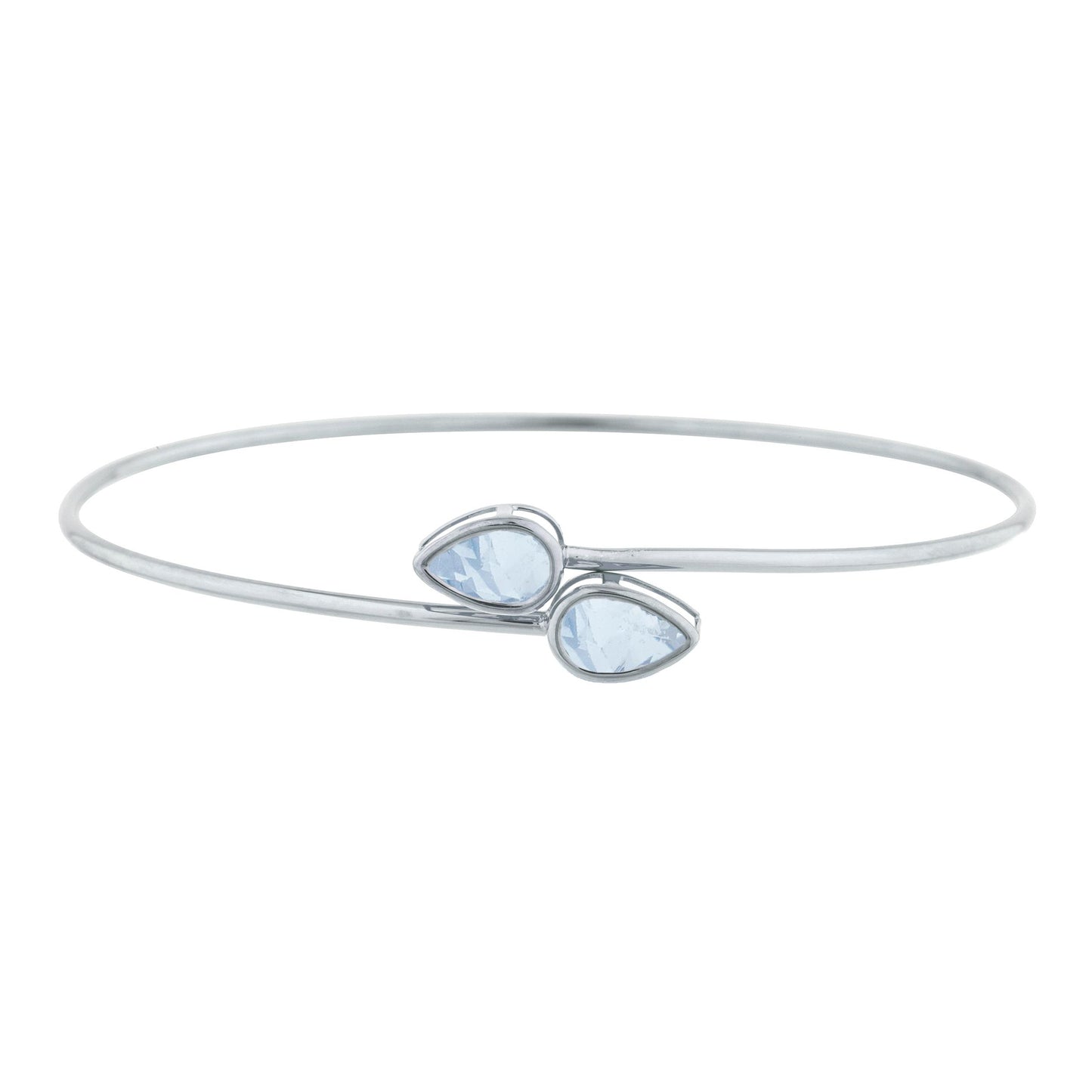 14Kt Gold Genuine Aquamarine Pear Bezel Bangle Bracelet