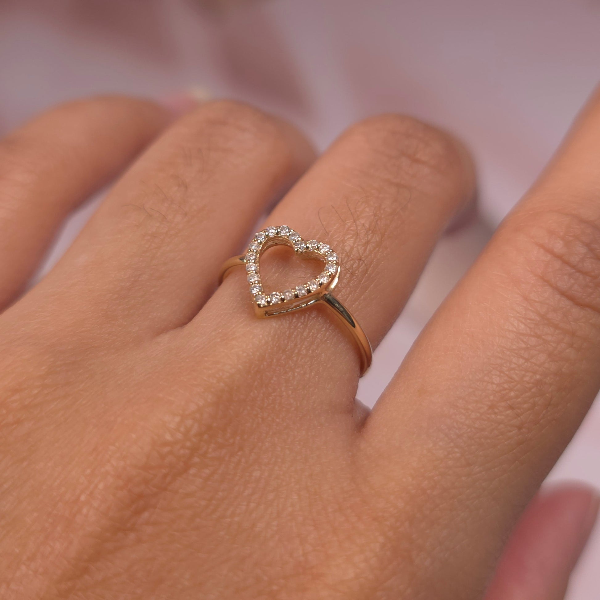 14Kt Gold Genuine Natural Diamond Open Heart Design Ring