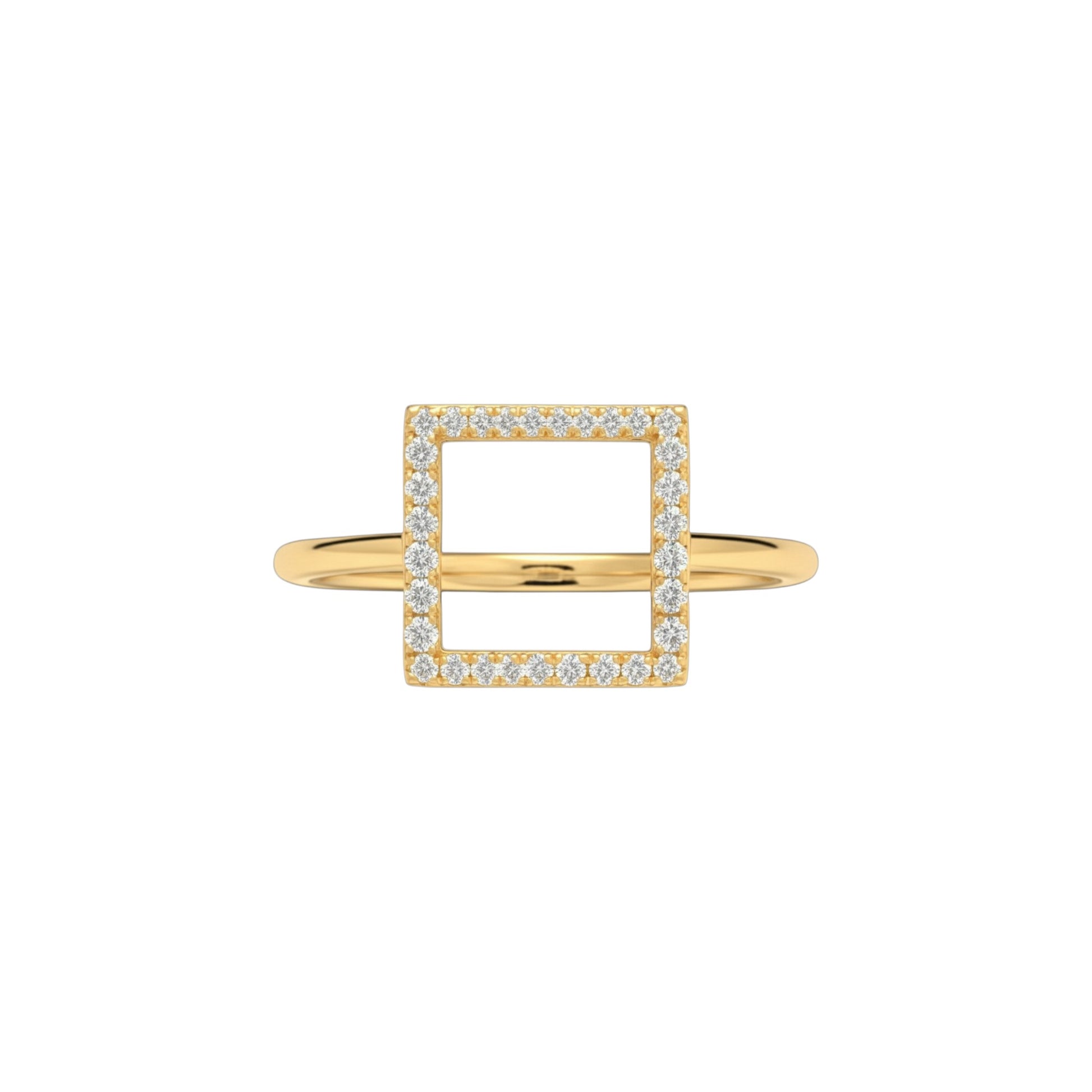 14Kt Gold Genuine Natural Diamond Open Square Design Ring