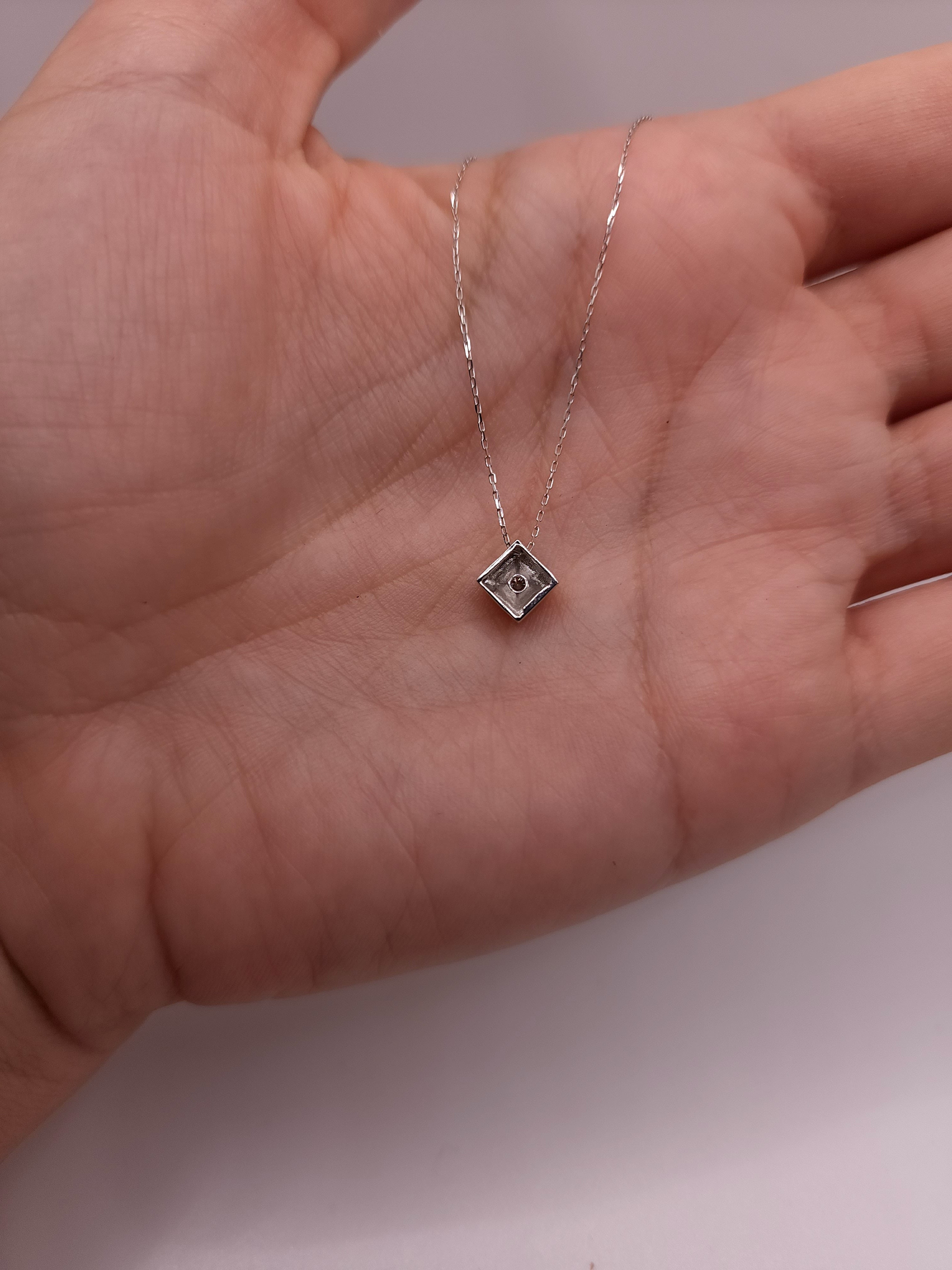 14Kt Gold Genuine Natural Diamond Square Design Pendant Necklace
