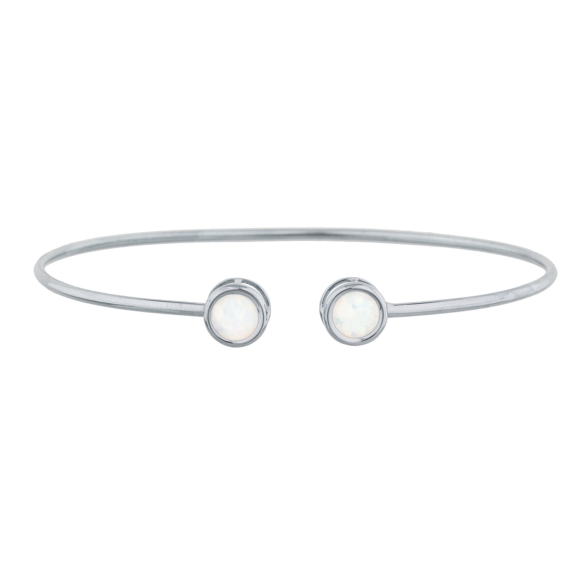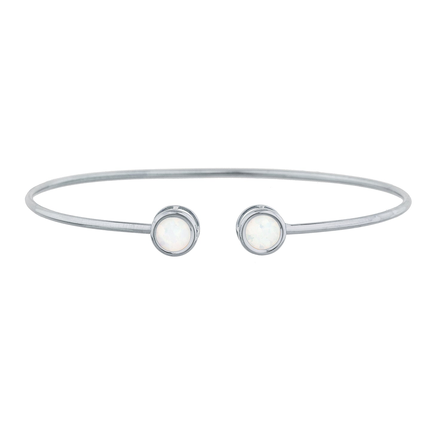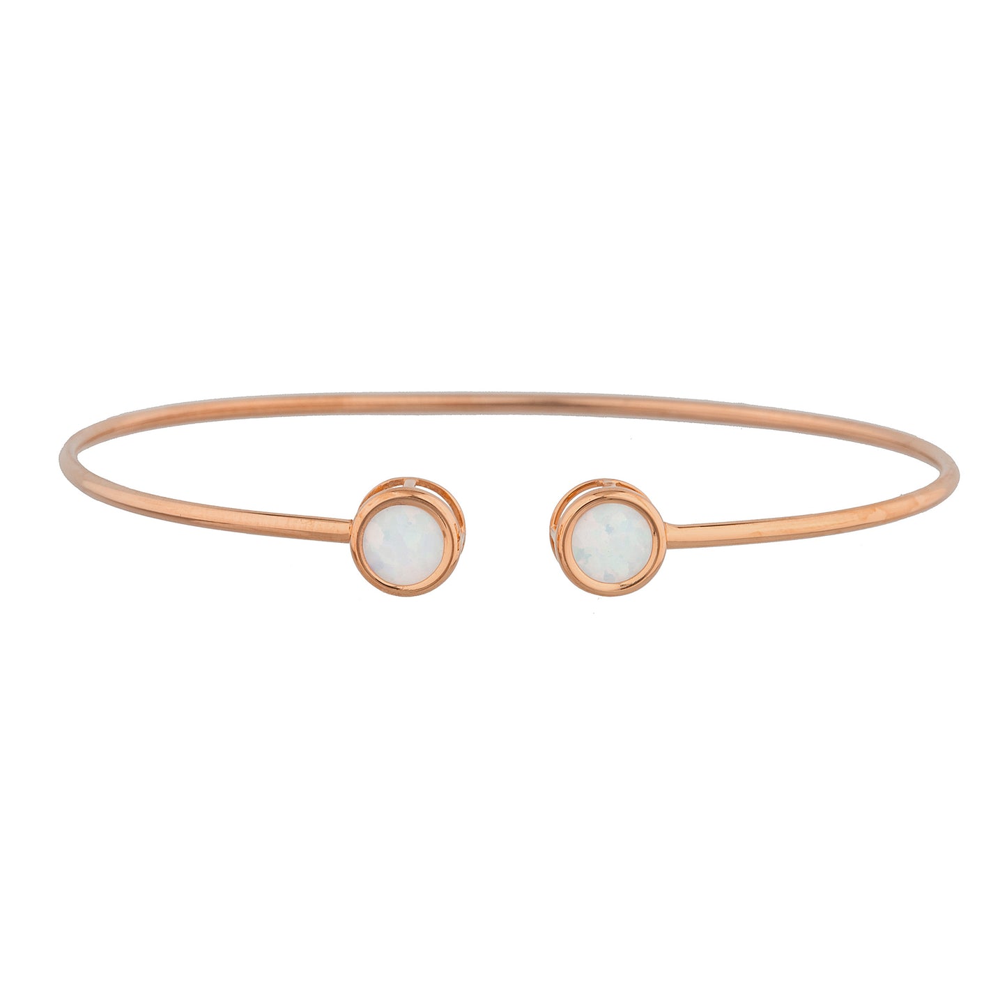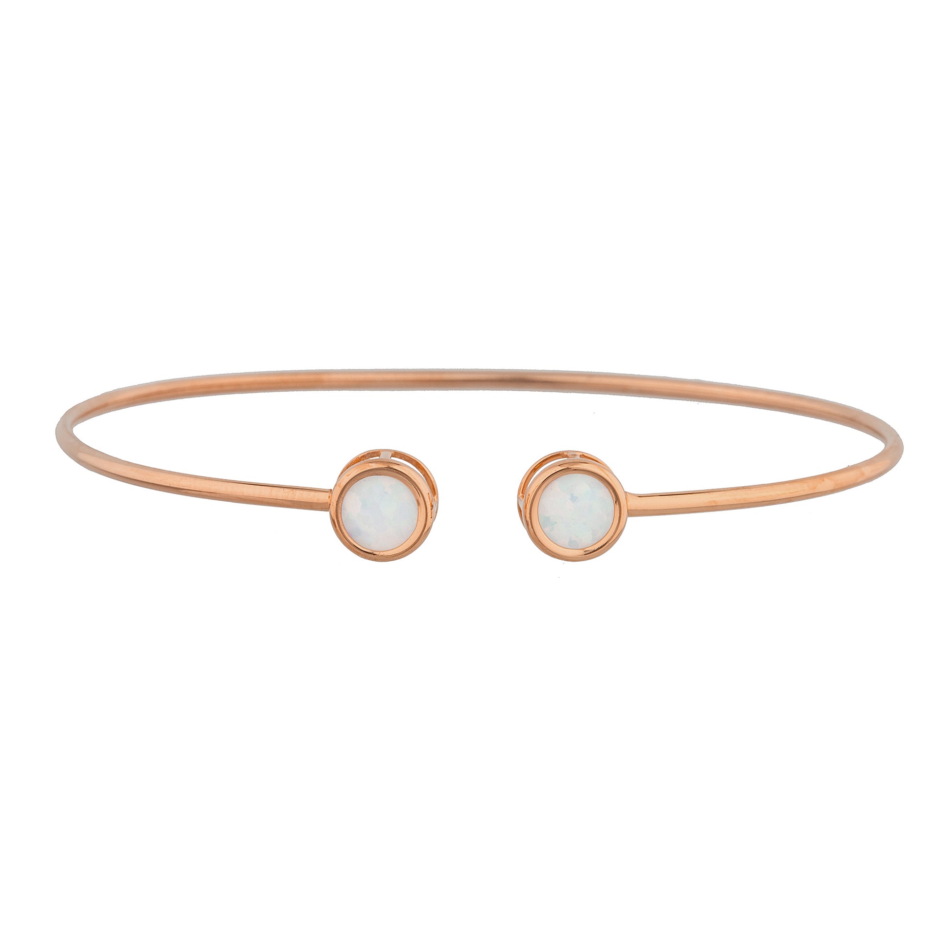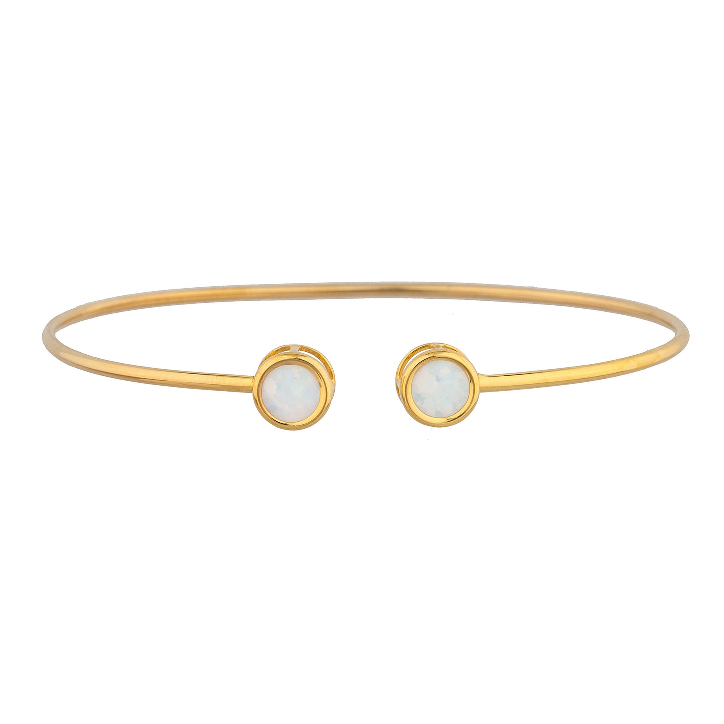 14Kt Gold Genuine Opal Round Bezel Bangle Bracelet