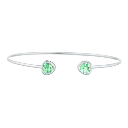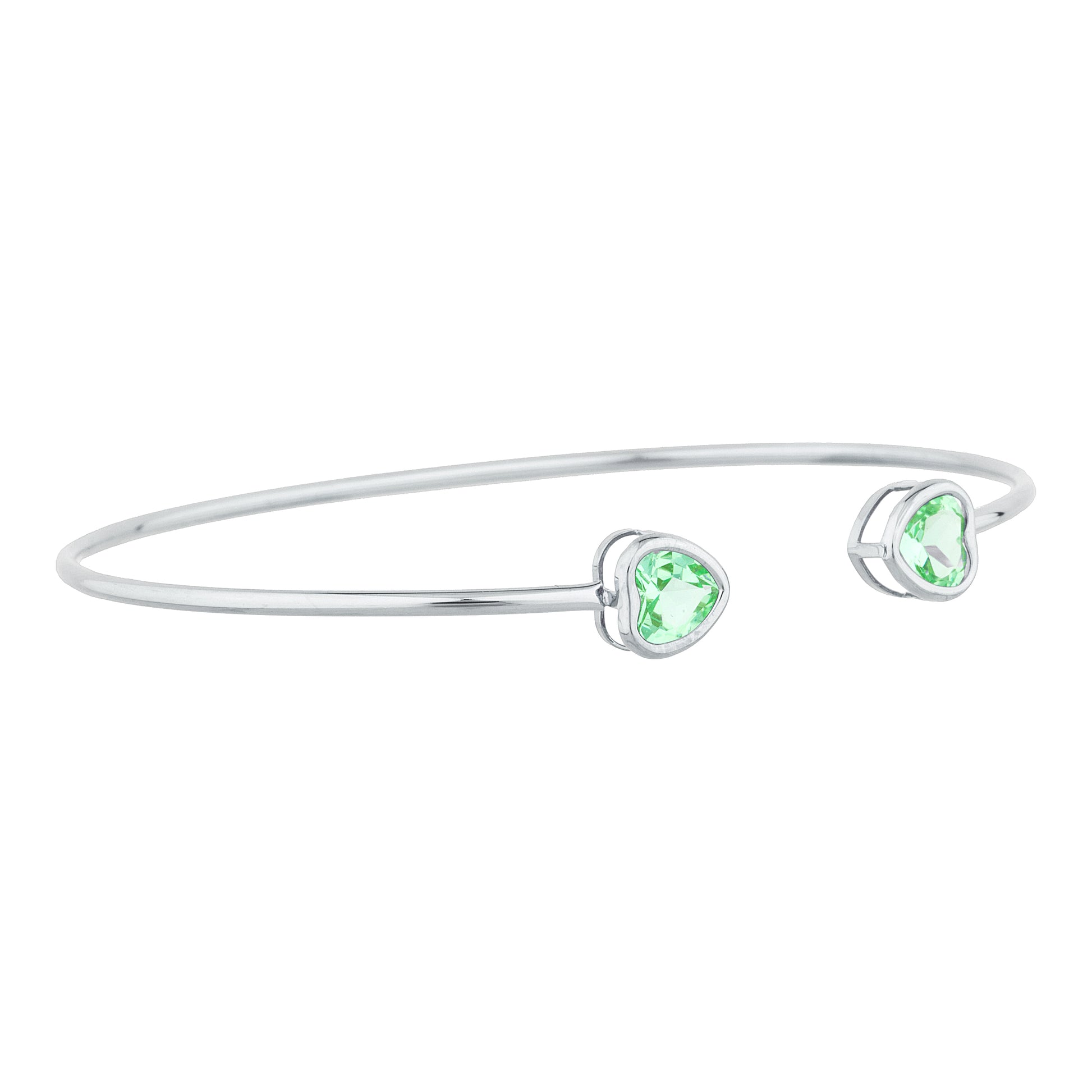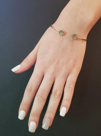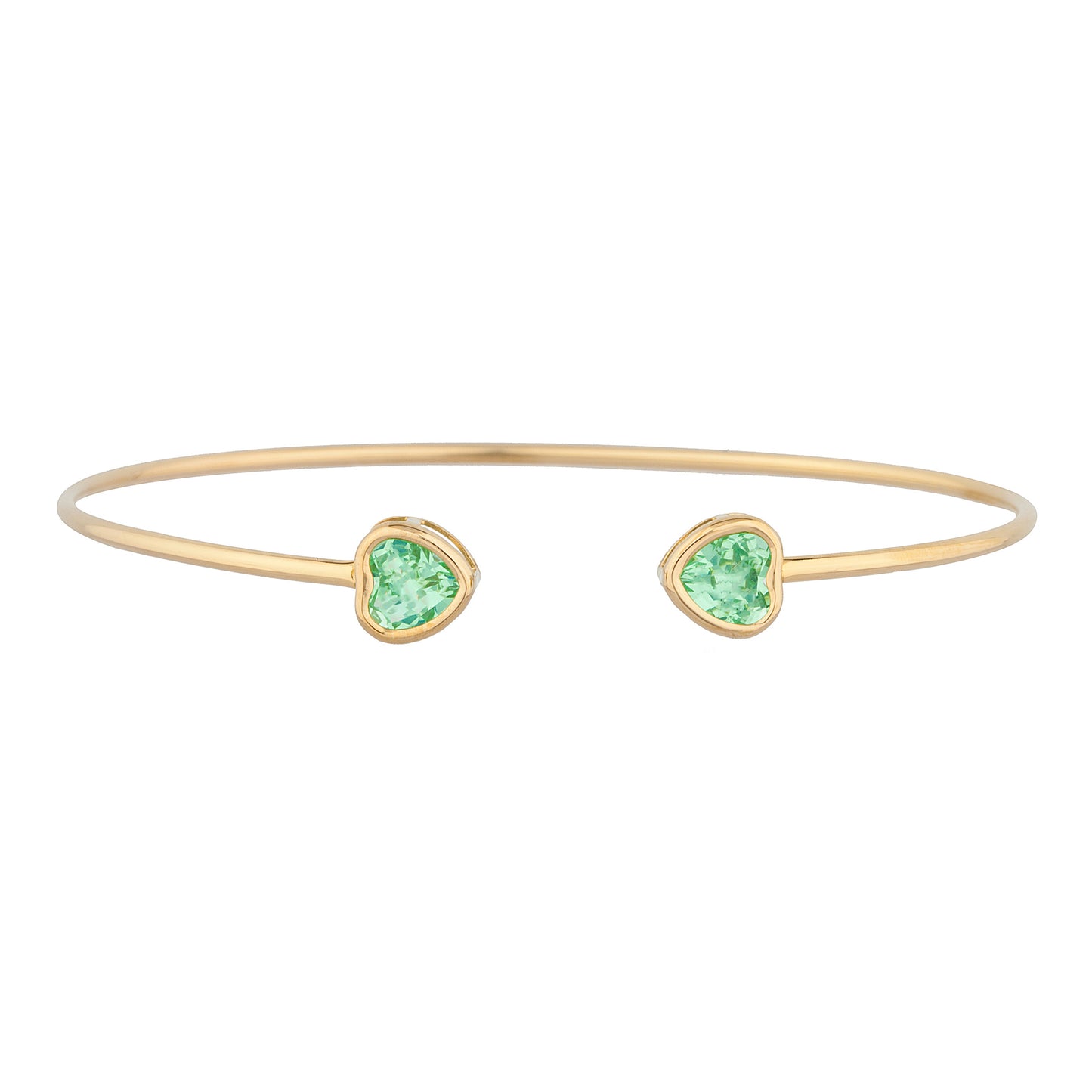 14Kt Gold Green Sapphire Heart Bezel Bangle Bracelet