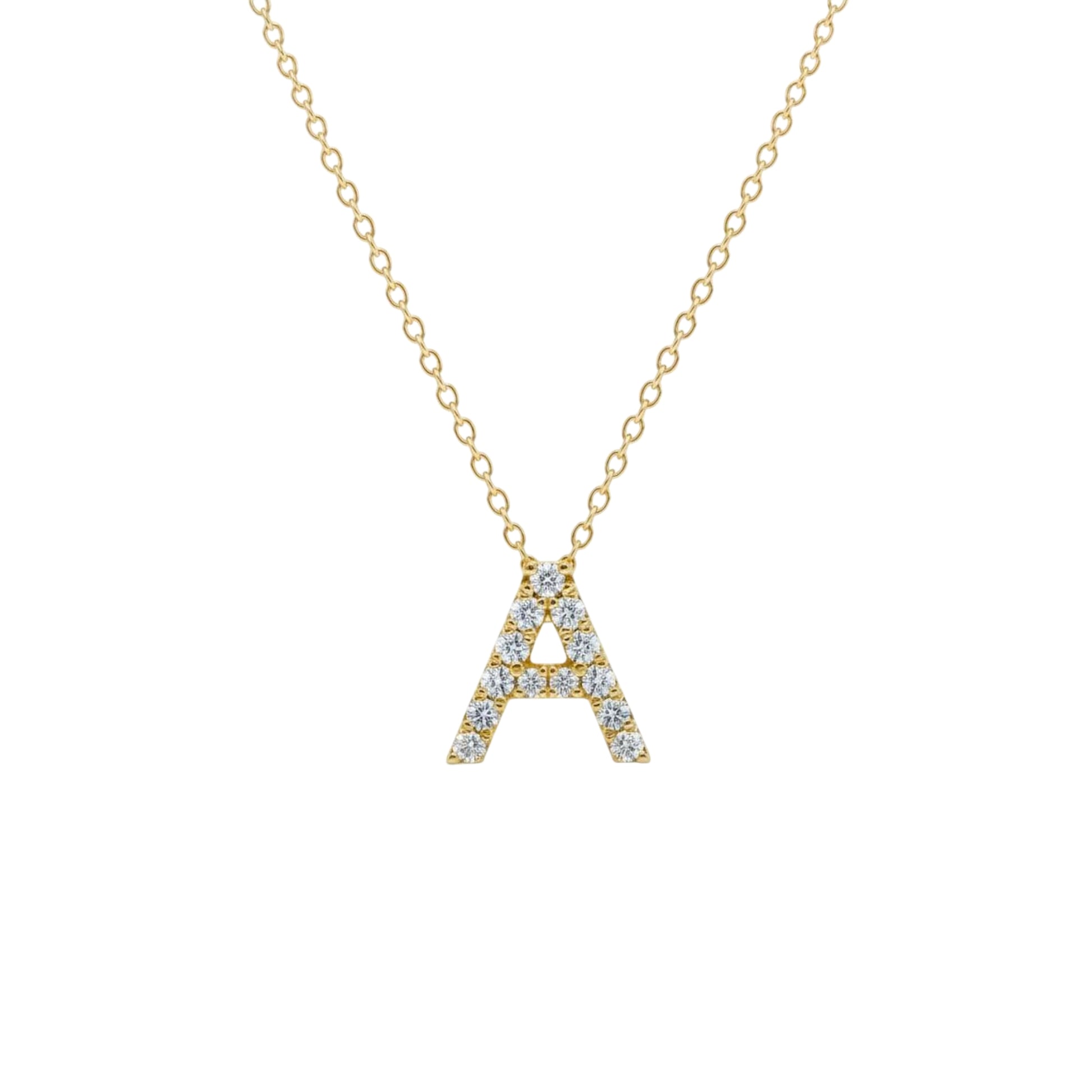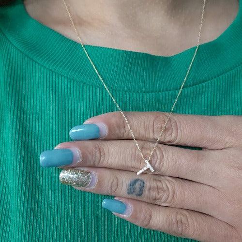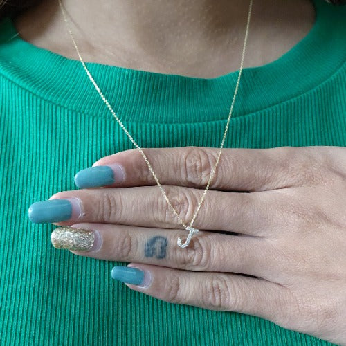 14Kt Gold Initial Letter Diamond Pendant Necklace