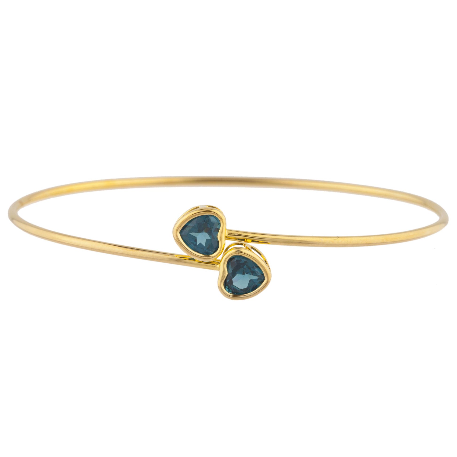 14Kt Gold London Blue Topaz Heart Bezel Bangle Bracelet