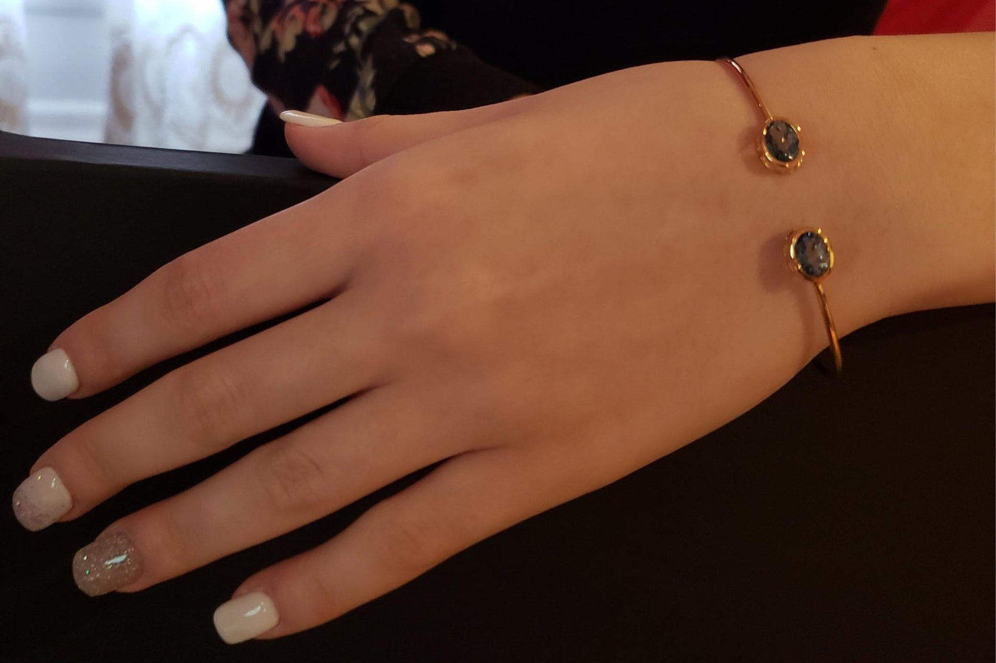 This is a beautiful oval shape bezel bangle bracelet set in Solid 14Kt Gold. We have this bangle design available in all gemstones that you can see in our store. You can choose if you want it in 14Kt White Gold, 14Kt Yellow Gold or 14Kt Rose Gold.