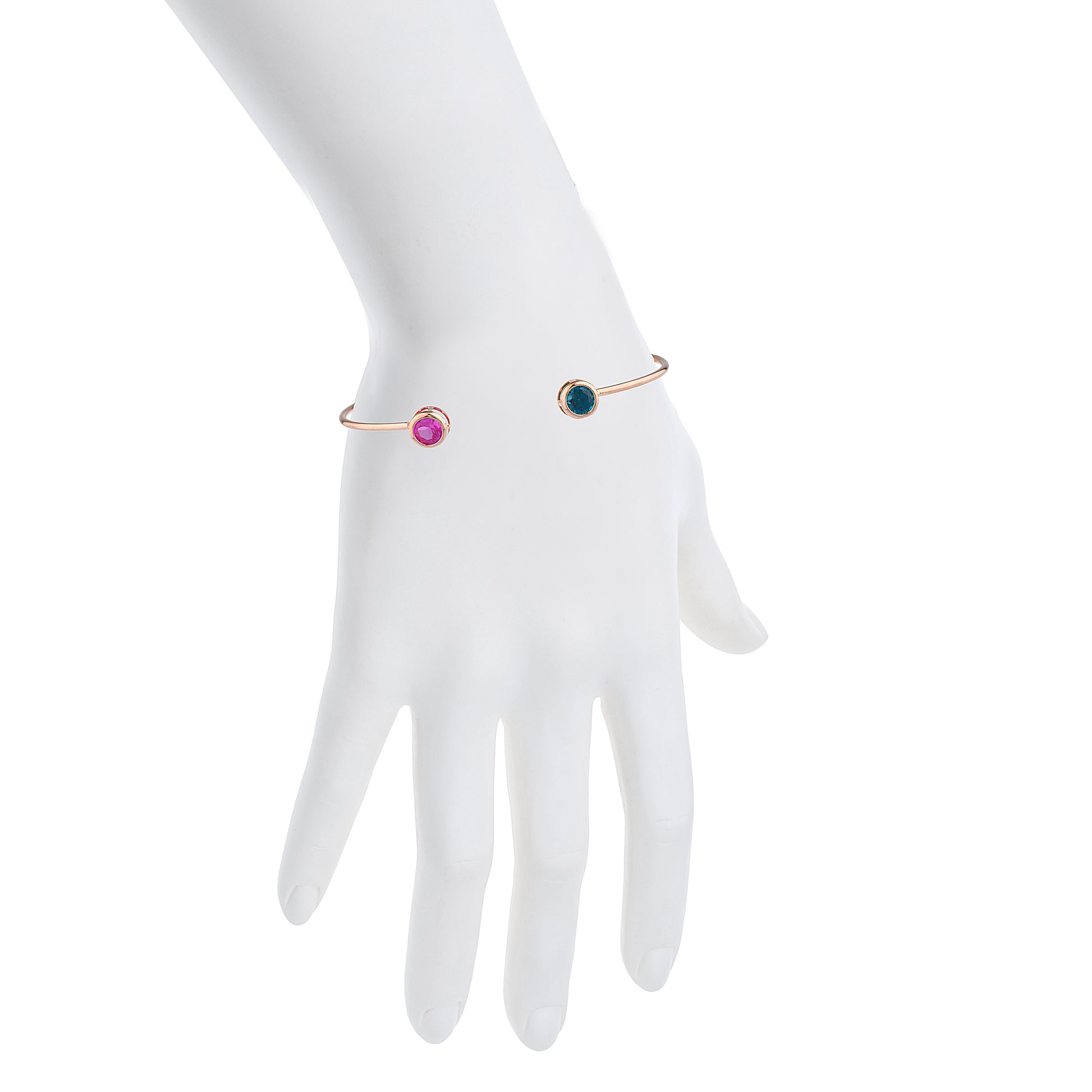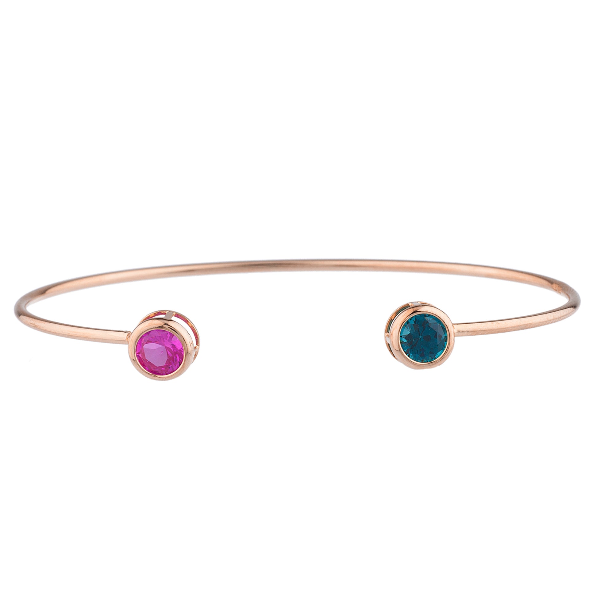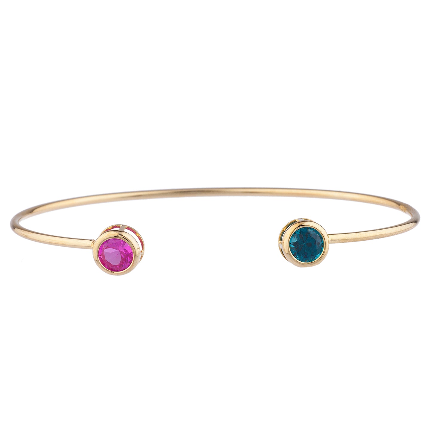 14Kt Gold London Blue Topaz & Pink Sapphire Round Bezel Bangle Bracelet