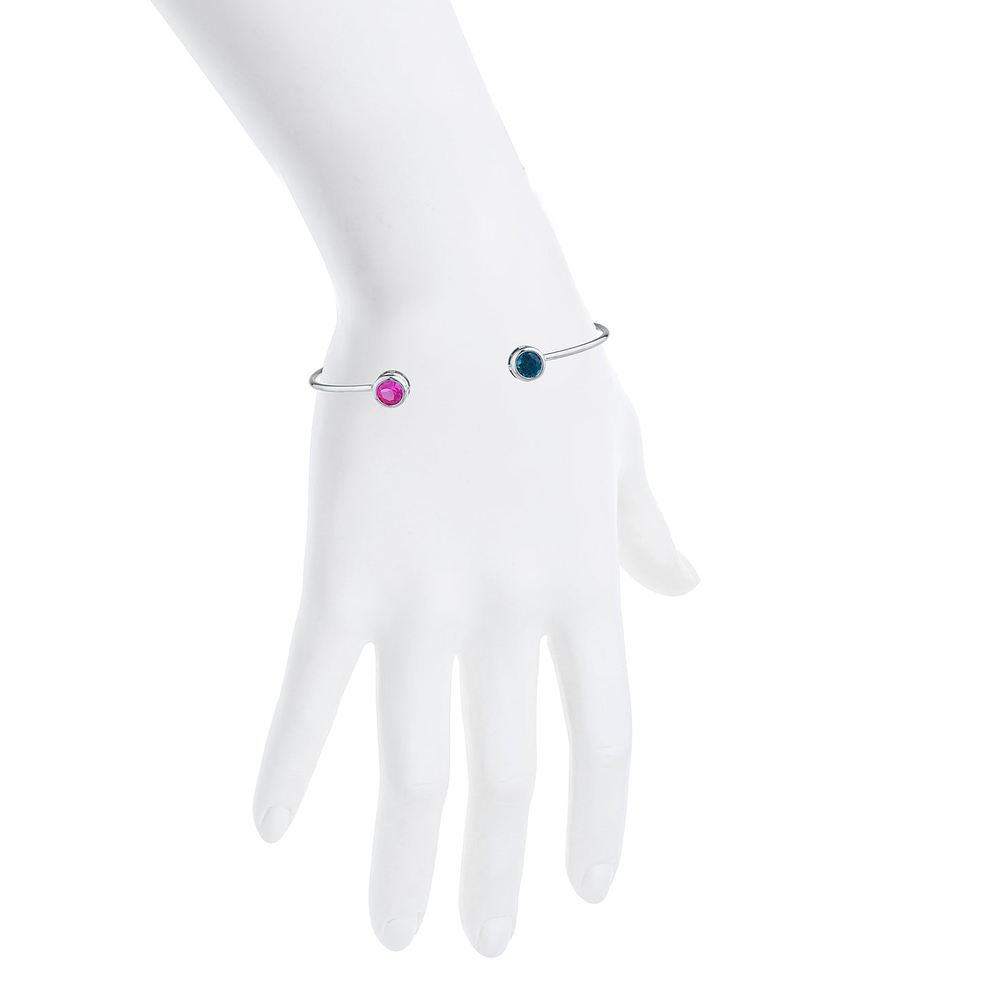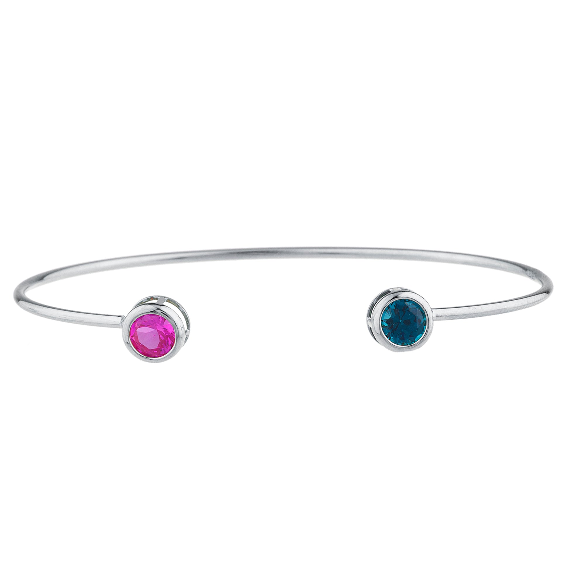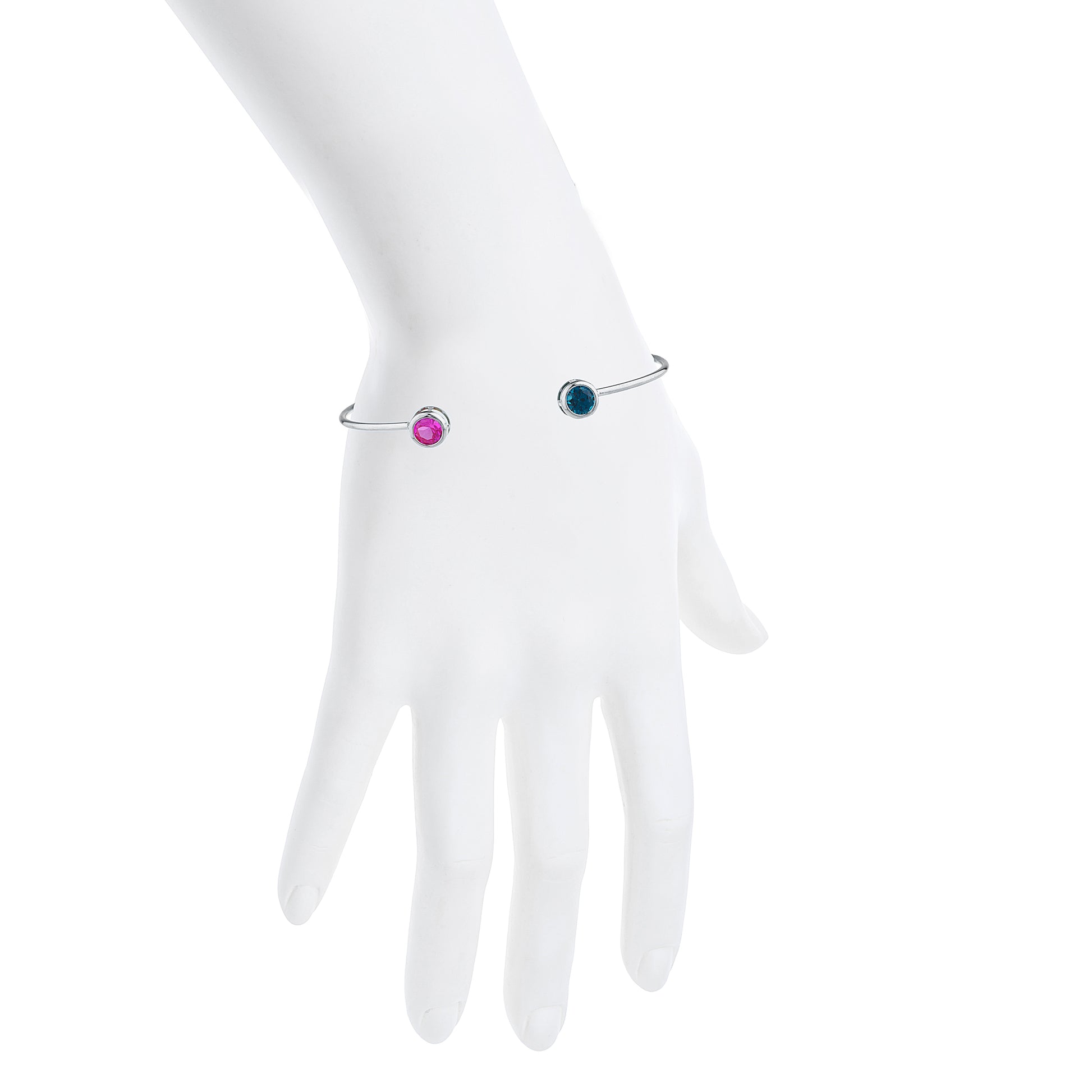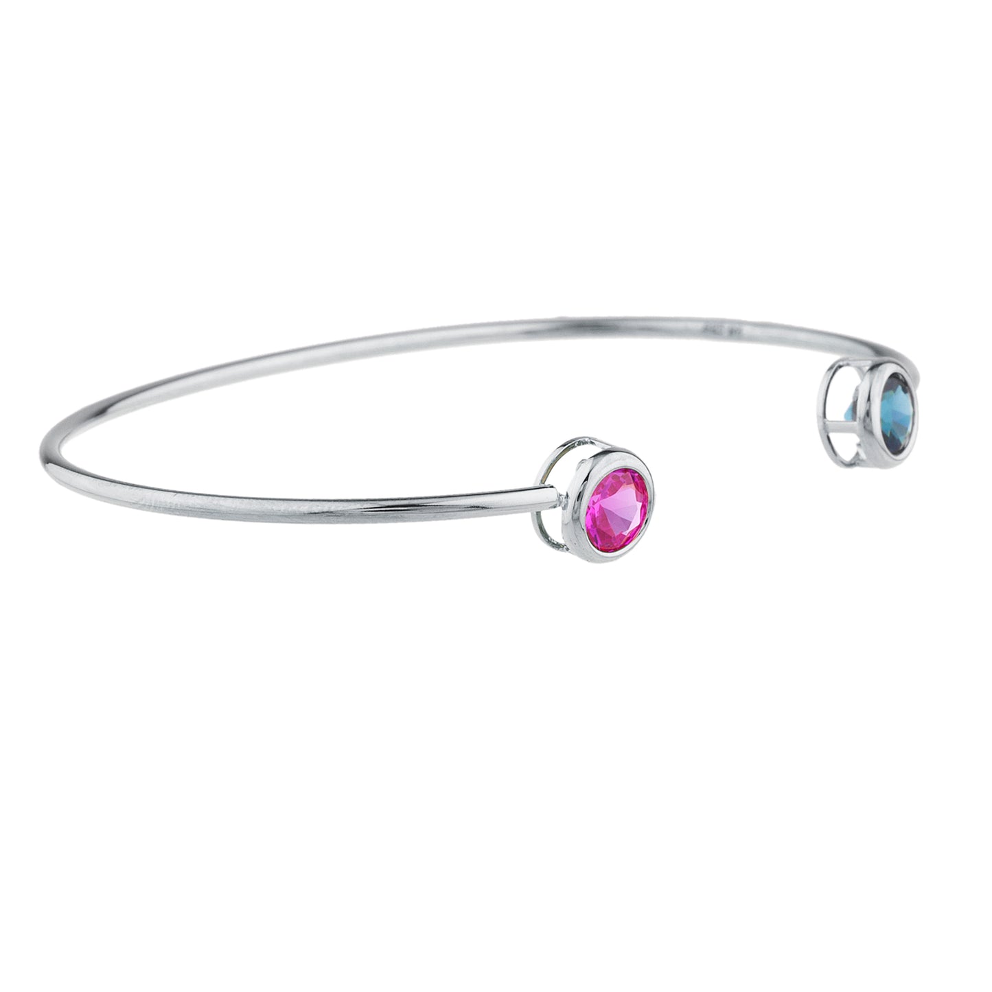 14Kt Gold London Blue Topaz & Pink Sapphire Round Bezel Bangle Bracelet