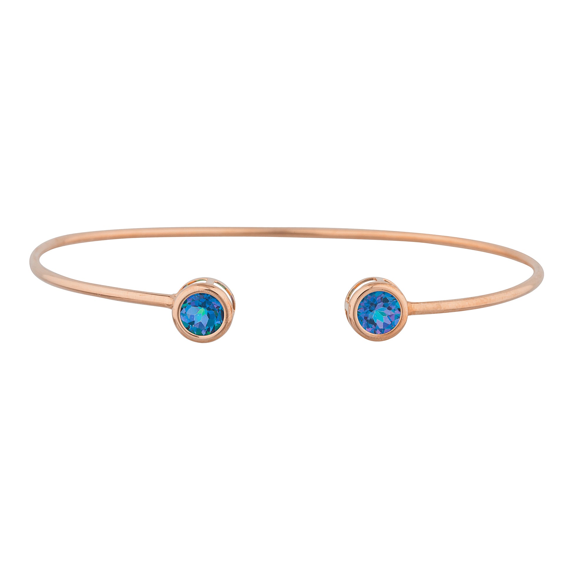 14Kt Gold Natural Blue Mystic Topaz Round Bezel Bangle Bracelet
