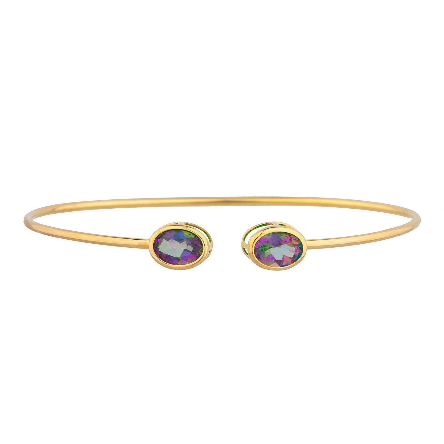 14Kt Gold Natural Mystic Topaz Oval Bezel Bangle Bracelet