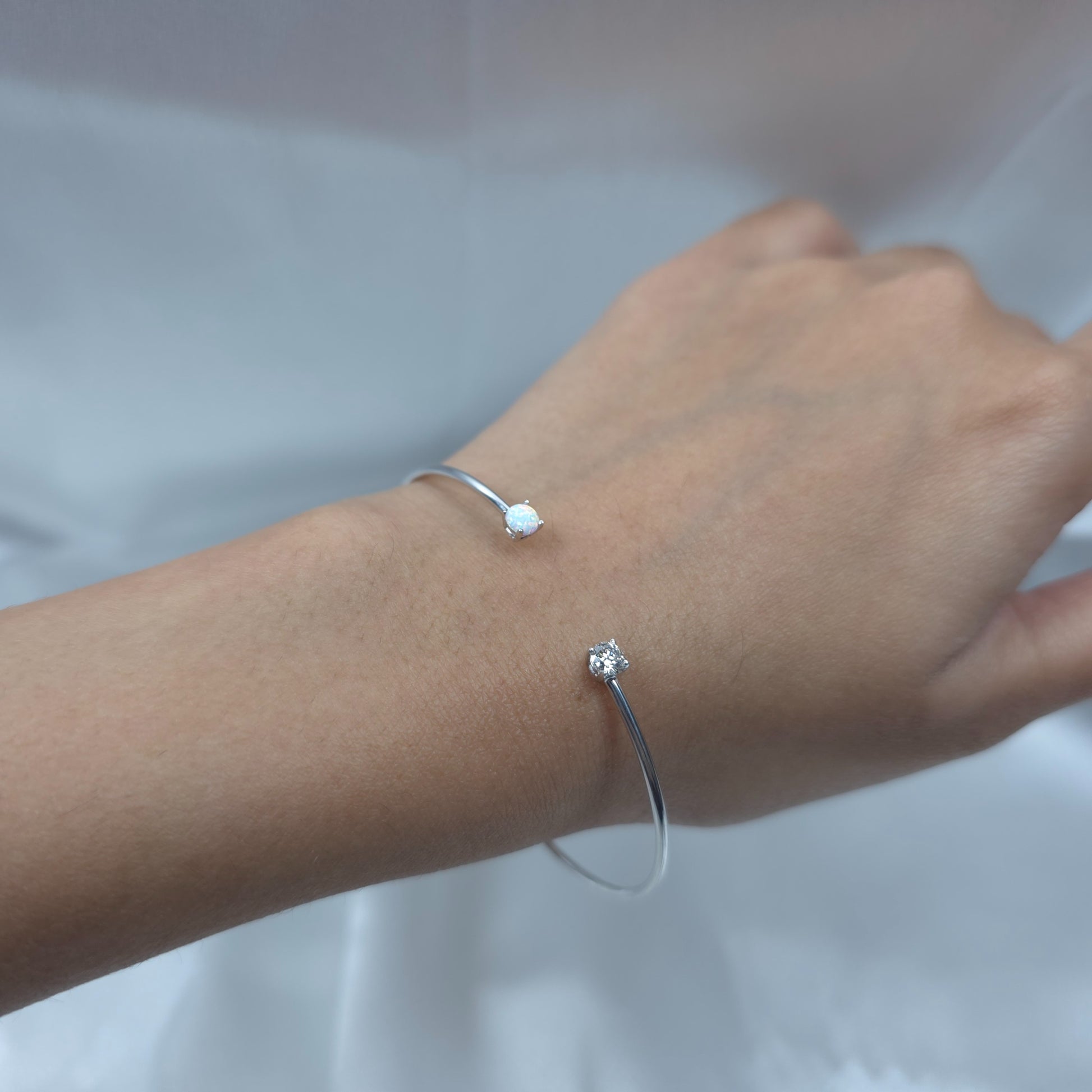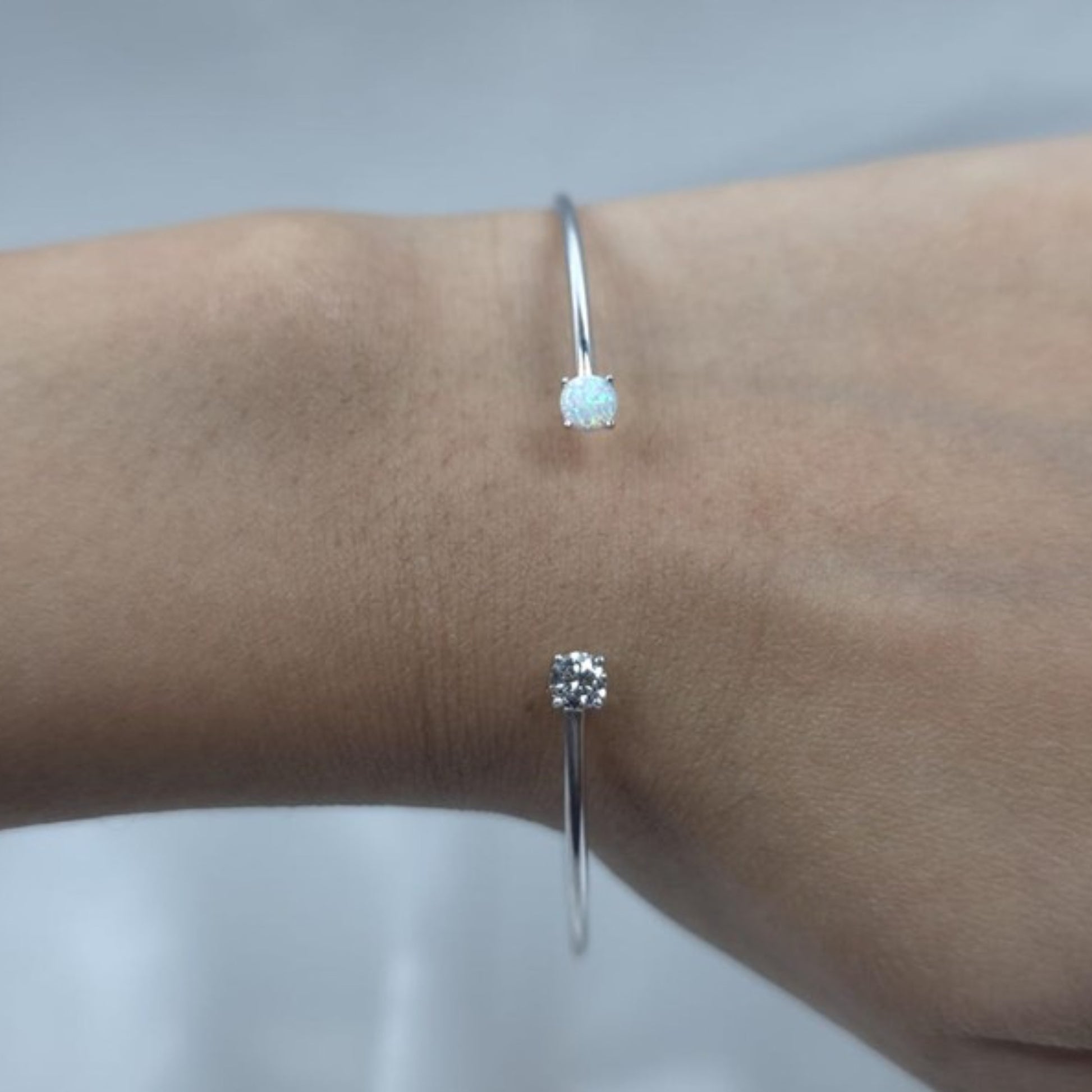 The bangle has a thin wire to make it flexible so it is easy to put on and take off and comfortable to wear. You can choose if you want 14Kt White Gold, 14Kt Yellow Gold or 14Kt Rose Gold.