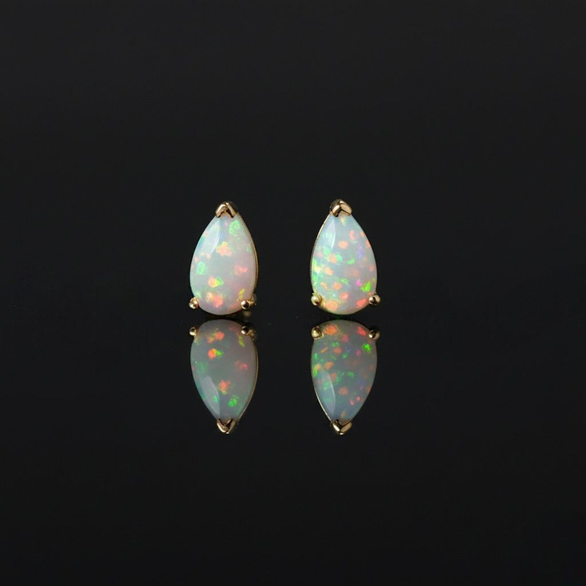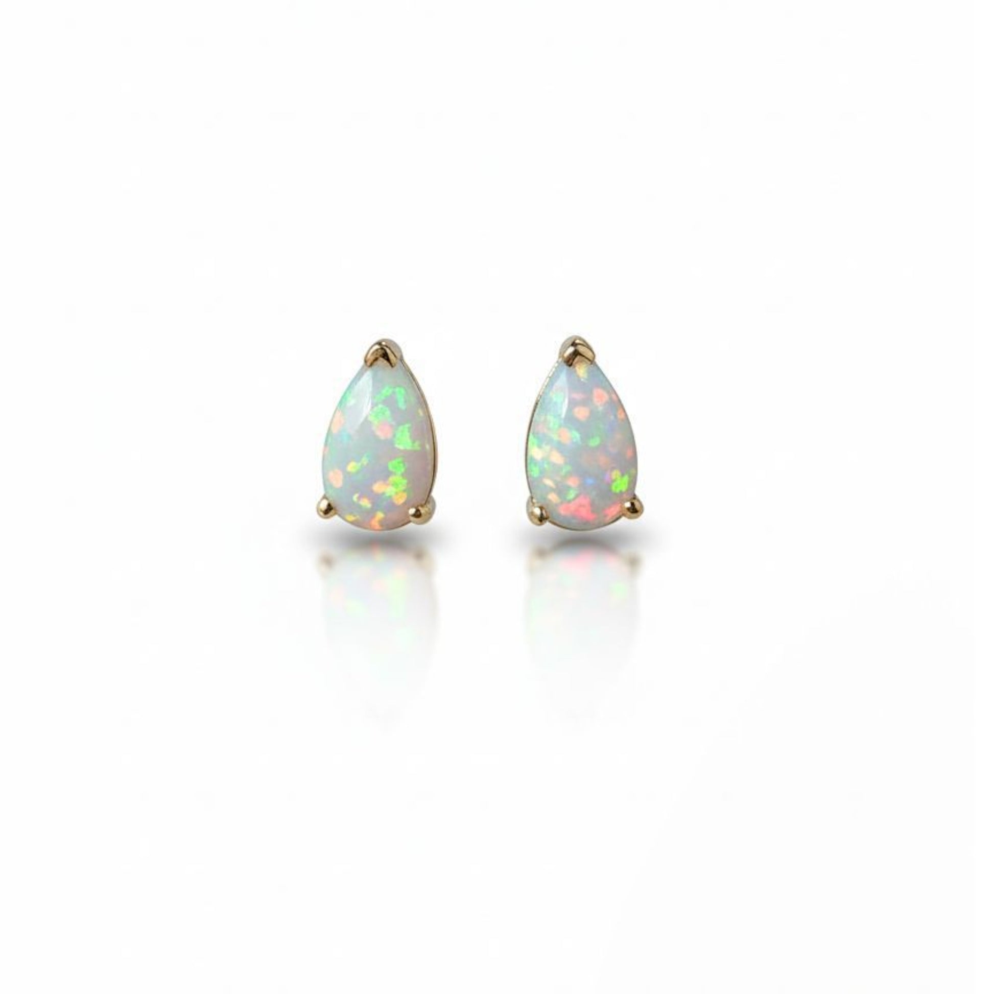 14Kt Gold Opal Teardrop October Birthstone Stud Earrings