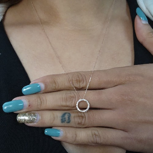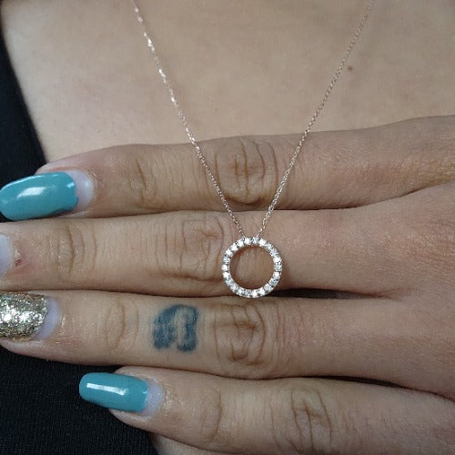14Kt Gold Open Circle Lab Grown Diamond Cluster Pendant Necklace