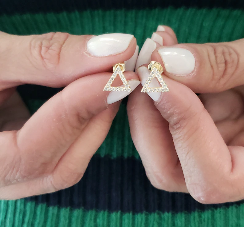 14Kt Gold Open Triangle Lab Grown Diamond Stud Earrings