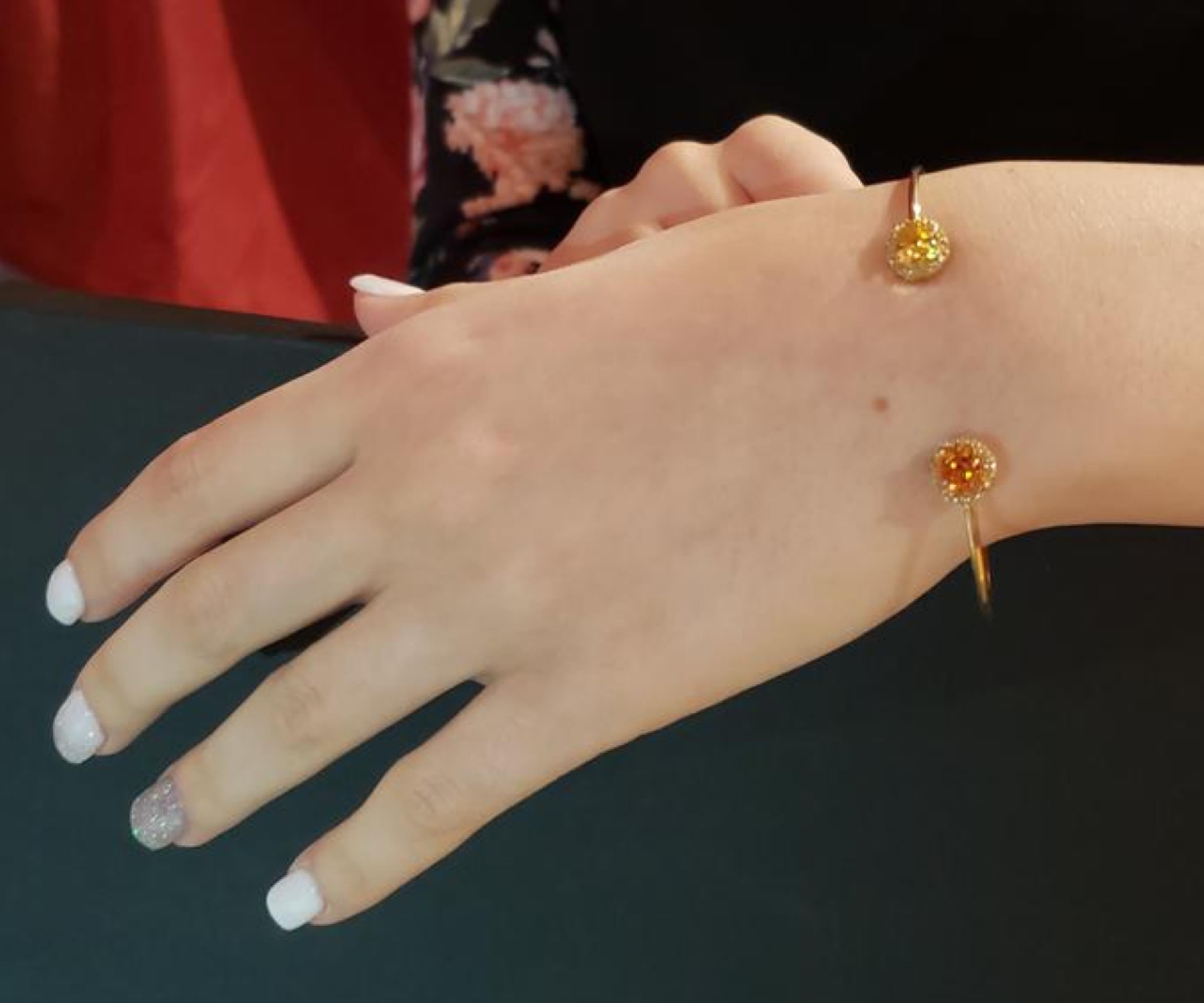 14Kt Gold Orange & Yellow Citrine Diamond Round Bangle Bracelet