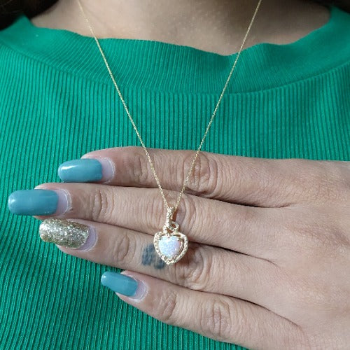 14Kt Gold Pink Opal Heart Design Pendant Necklace