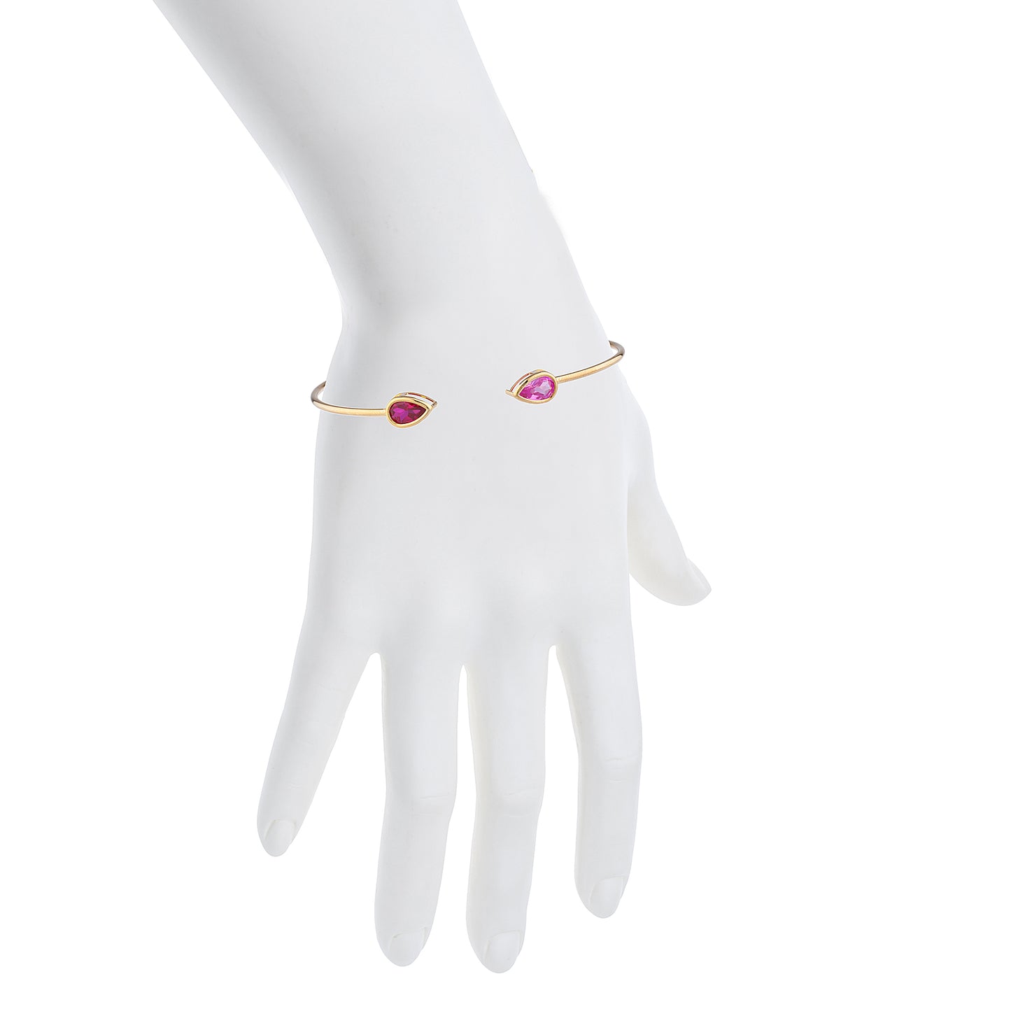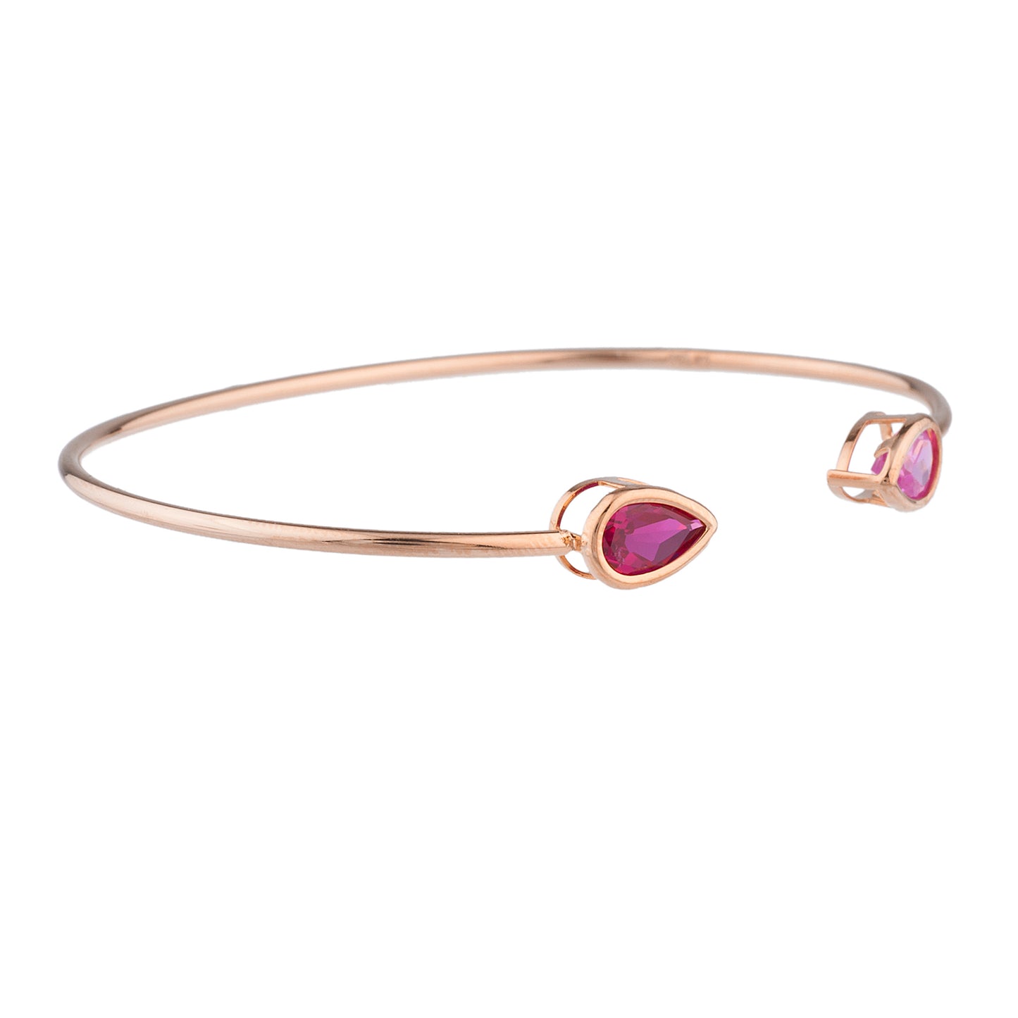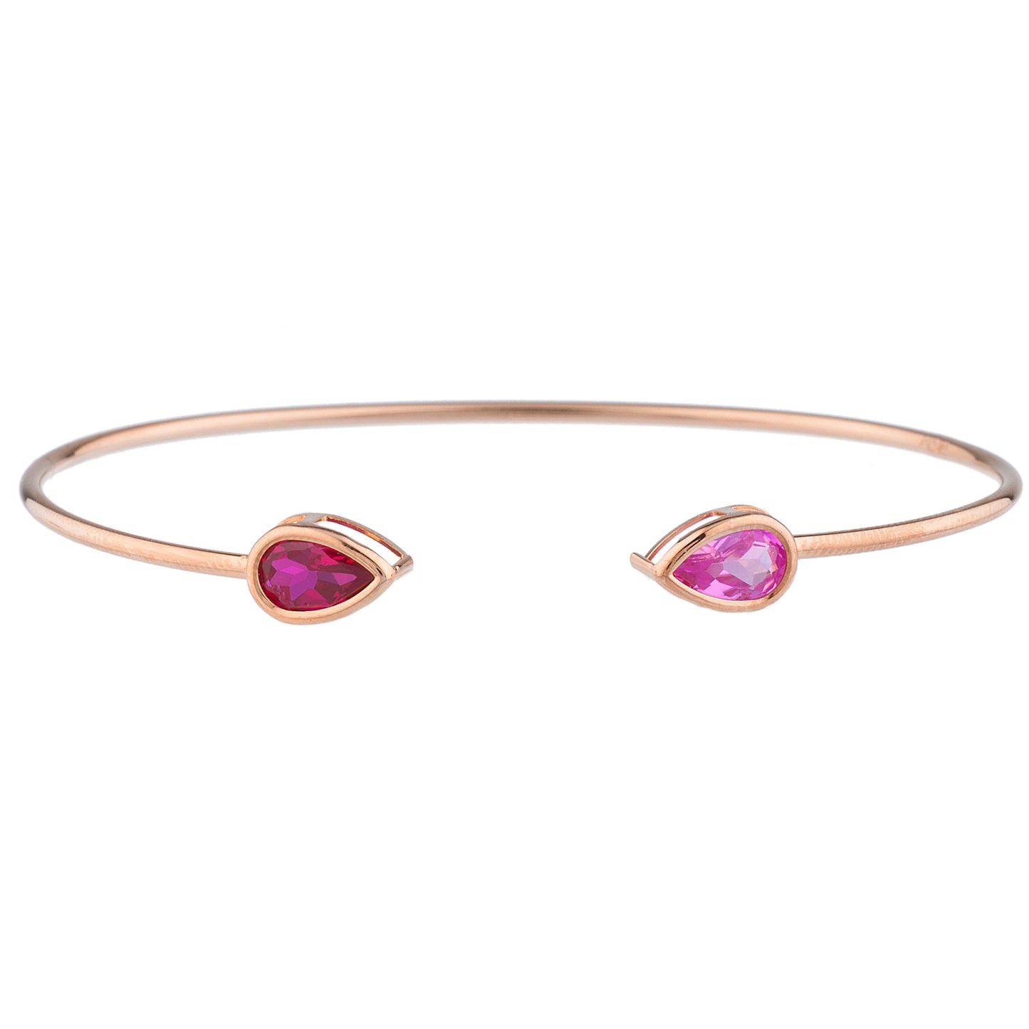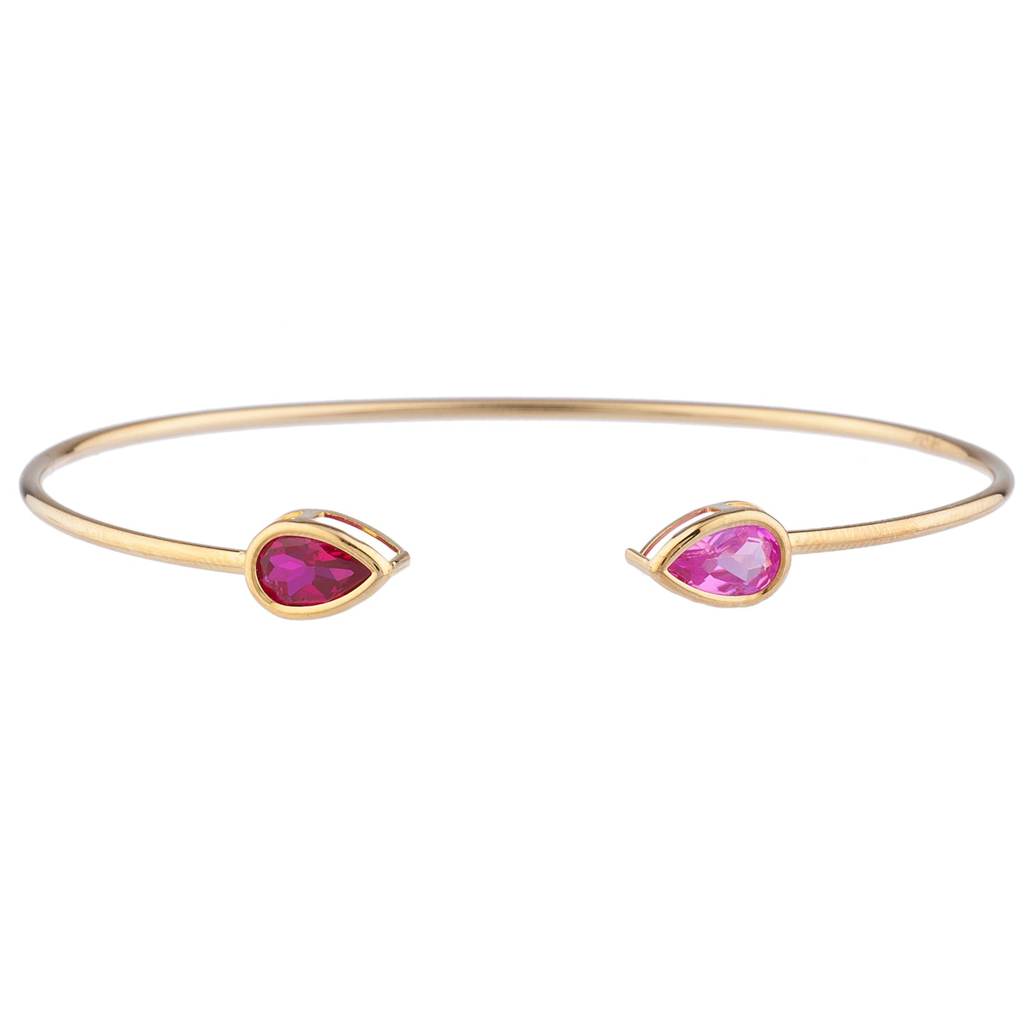 14Kt Gold Pink Sapphire & Ruby Pear Bezel Bangle Bracelet