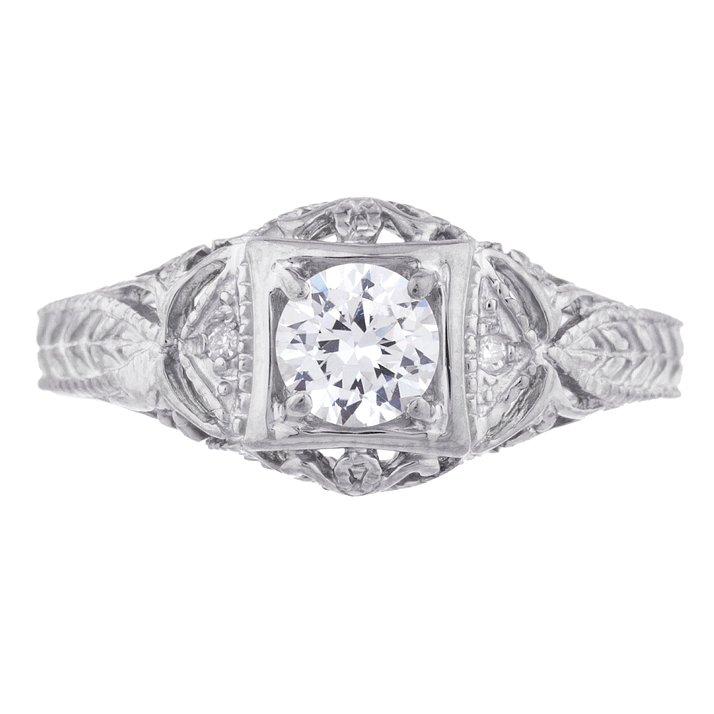 14Kt Gold White Sapphire & Diamond Design Round Ring