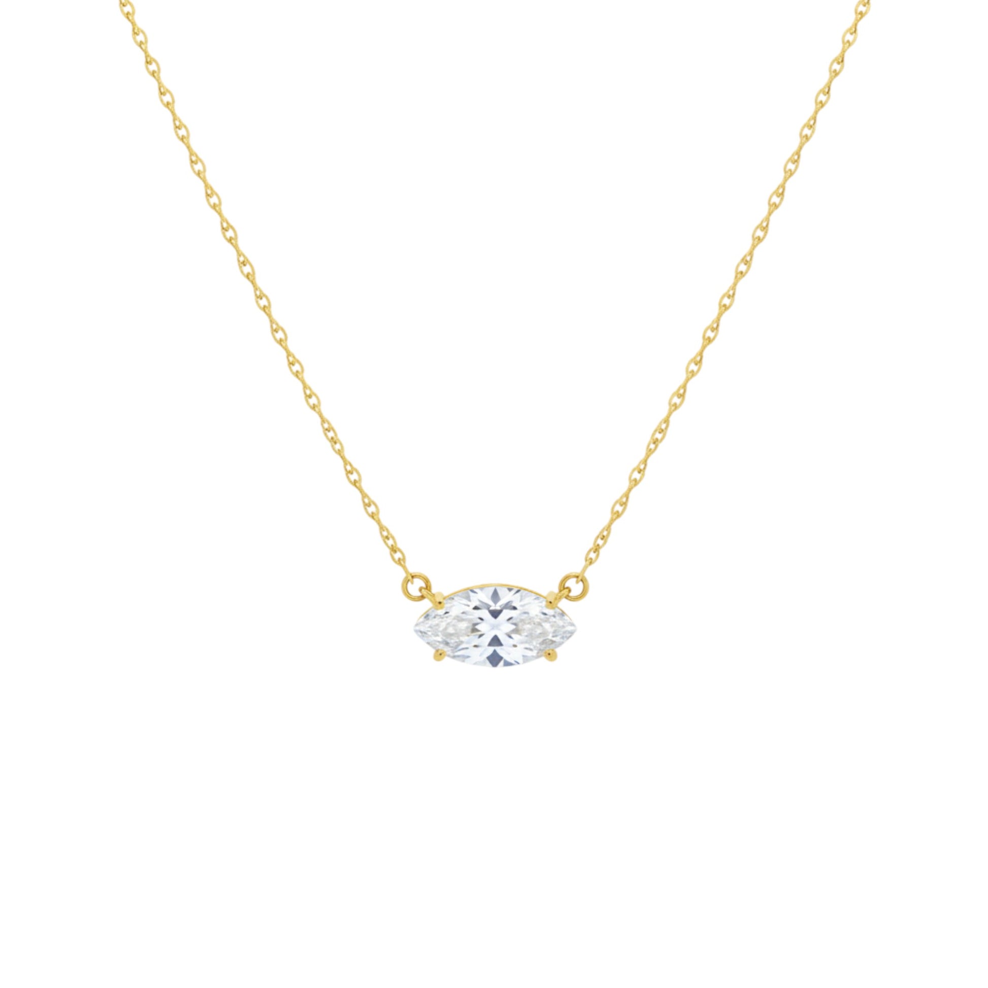 14Kt Gold White Sapphire Marquise Pendant Necklace