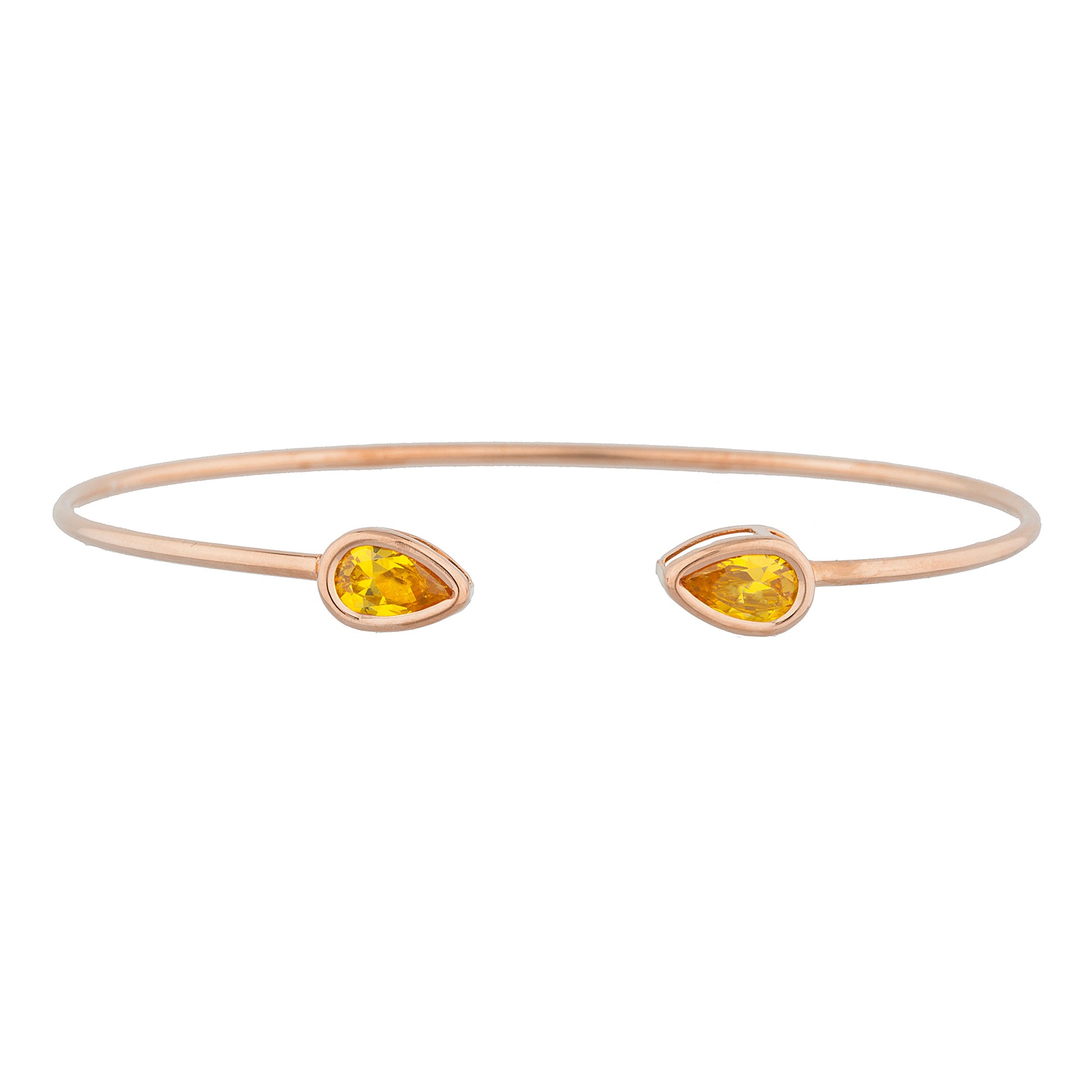 14Kt Gold Yellow Citrine Pear Bezel Bangle Bracelet