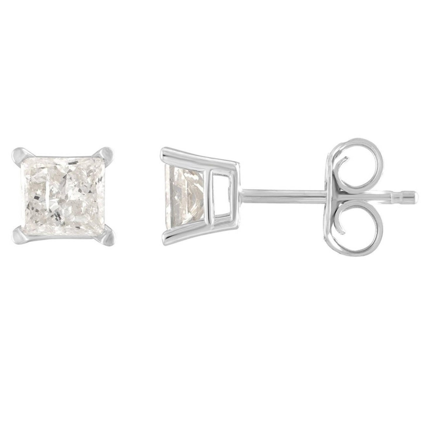 These earrings are in a princess shape design with 0.50 carat Genuine Natural Diamonds set in Solid 14Kt White Gold that can be worn for any occasion.
