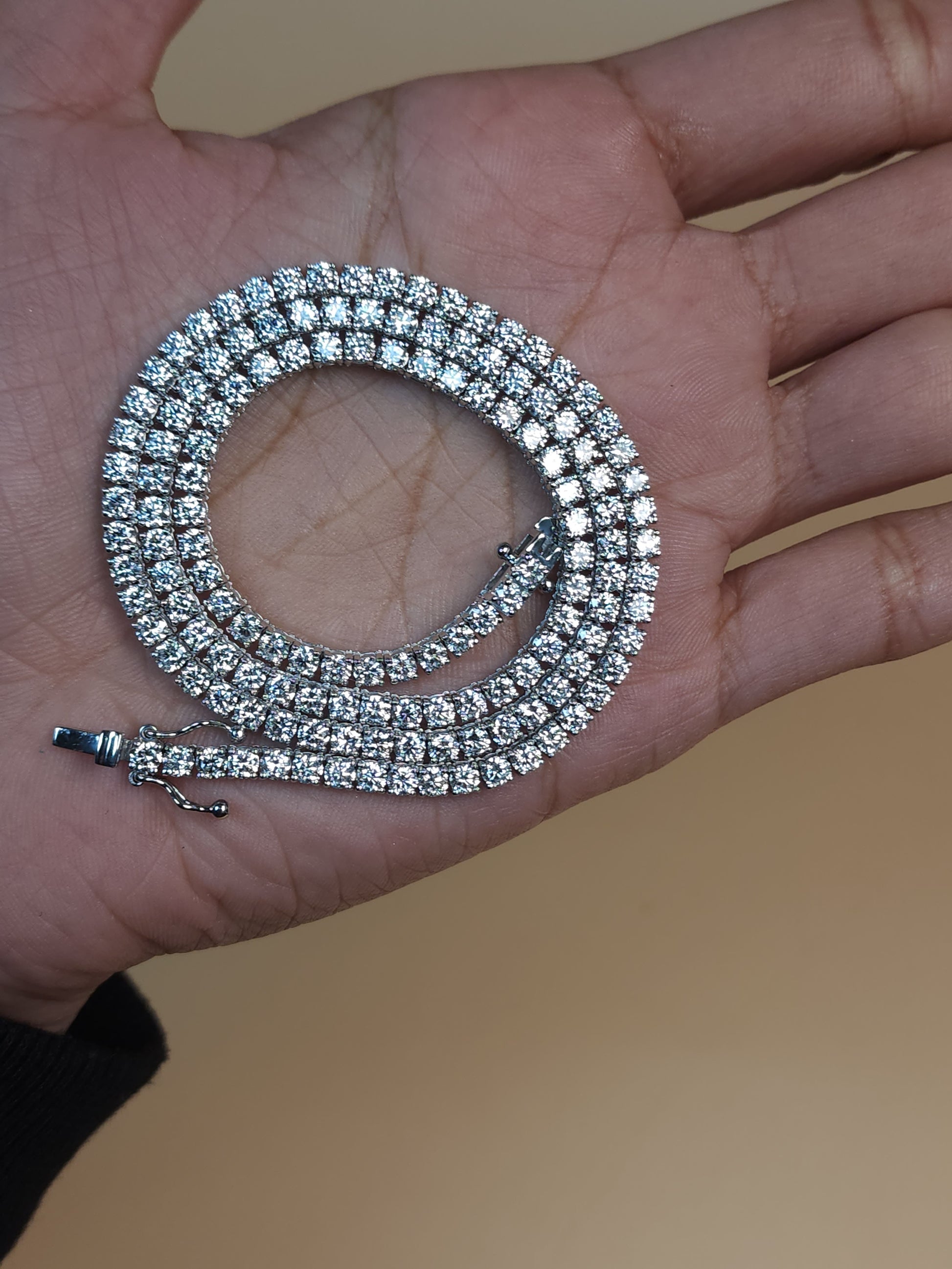 This is a beautiful diamond tennis necklace. It is made brand new when ordered. It is set with 144 diamonds. The diamonds are real genuine natural diamonds. This tennis necklace can be worn all the time. It has a secure lock.
