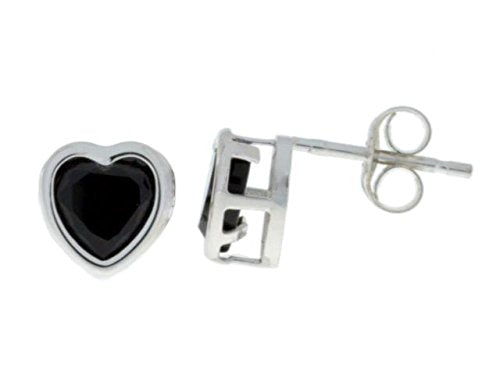 14Kt White Gold Genuine Black Onyx Heart Bezel Stud Earrings