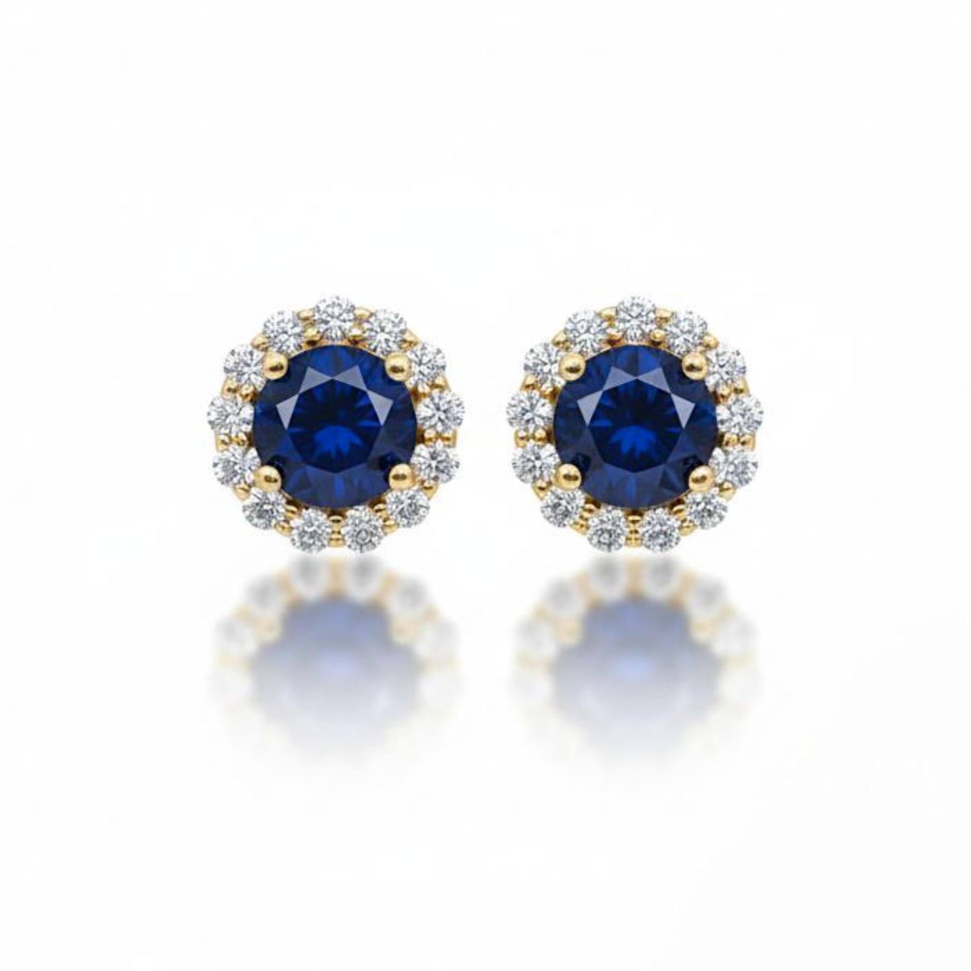 14Kt White Gold Blue Sapphire & Diamond Round Stud Earrings