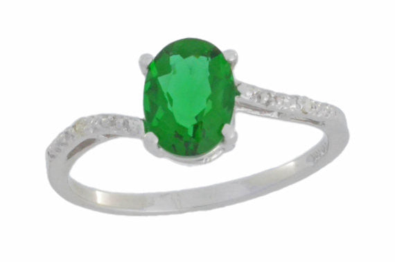 14Kt White Gold Emerald & Diamond Oval Ring