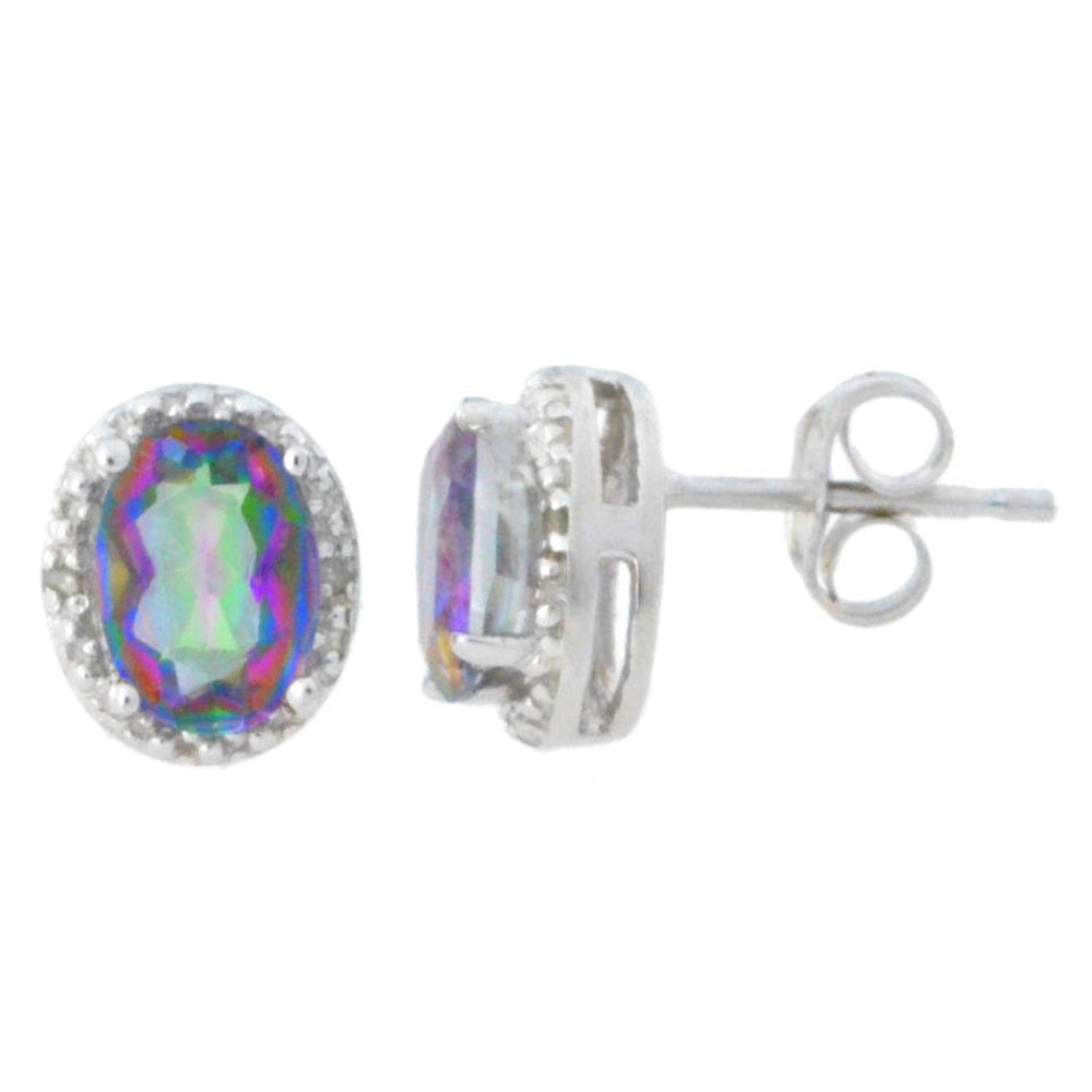 14Kt White Gold Genuine Mystic Topaz & Diamond Oval Stud Earrings