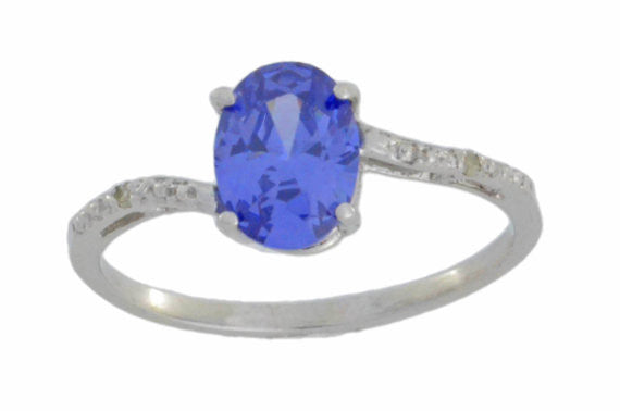 14Kt White Gold Tanzanite & Diamond Oval Ring